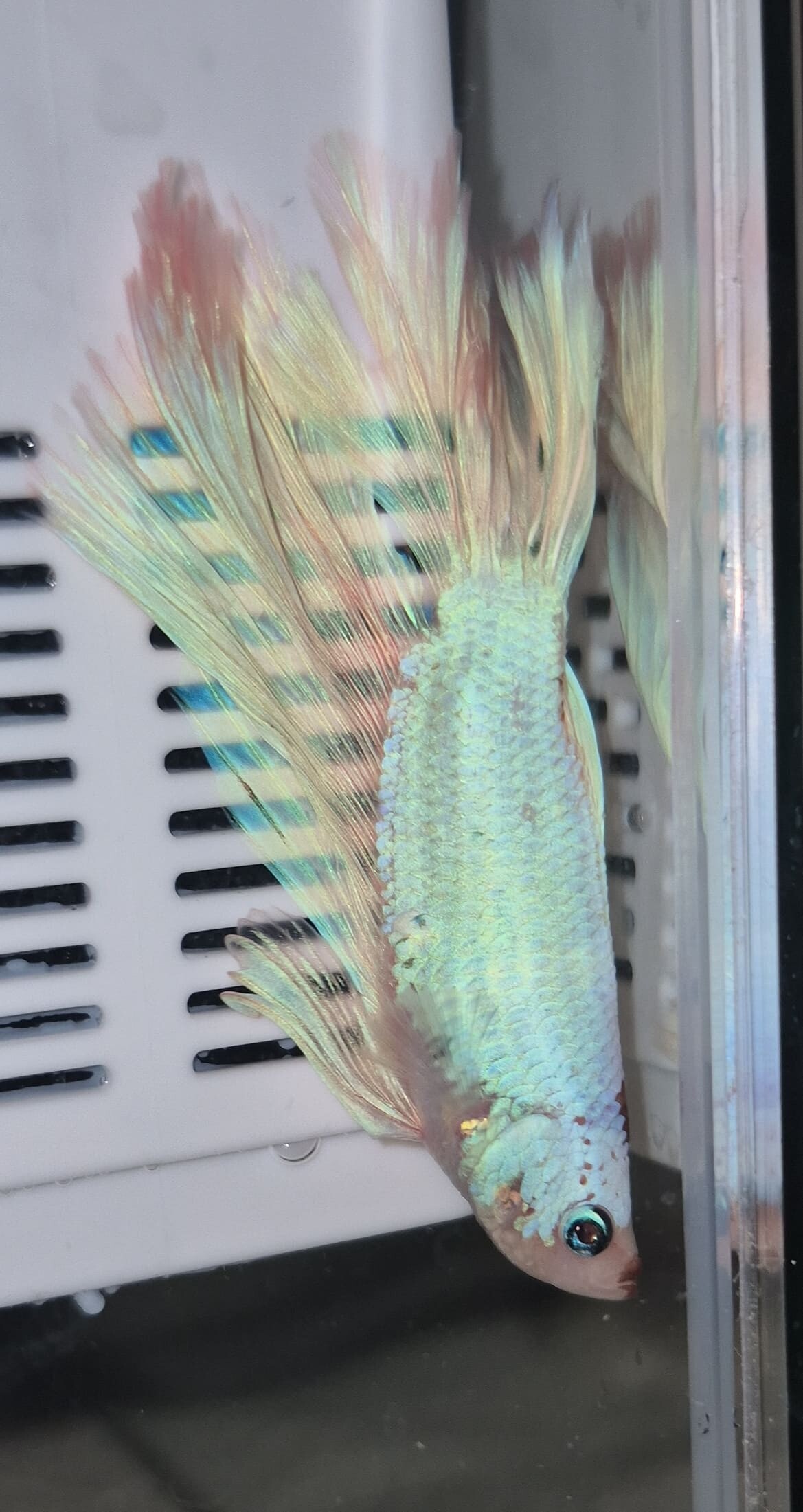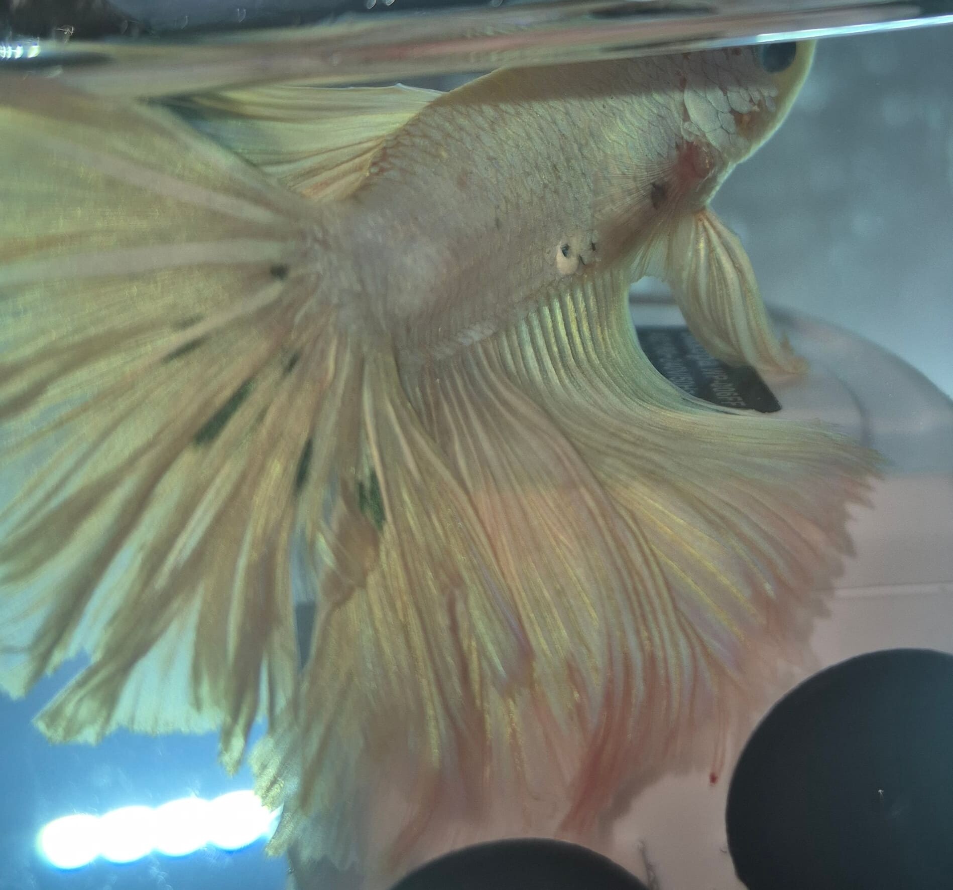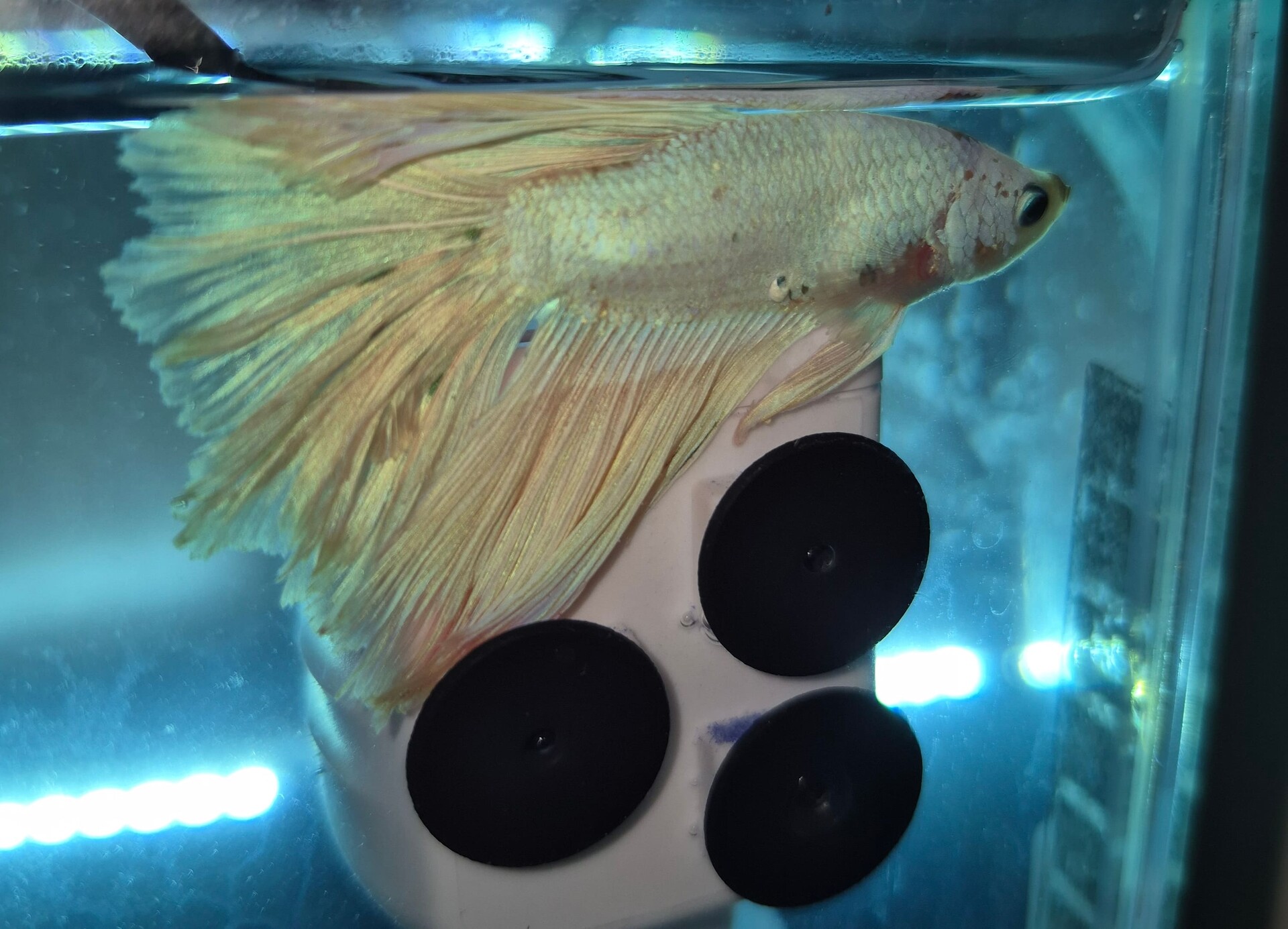 Anitosik 0 Жалоба Опубликовано 4 апреля Итак, петушок болеет, ведет себя очень вяло, почти не двигается, хотя иногда рывками плавает недалеко от фильтра, а так в основном тусит рядом с ним. Слабо реагирует на все, даже на еду, на дно опускается очень редко, даже за едой не плывет туда, кормлю практически с рук. Внешне выглядит роскошно, но меня смущает непонятное выпирающее нечто, на фото хорошо видно. Об аквариуме: аквариуму 5 дней, запущен с safe start tetra и tetra bactozym +антихлор кондиционер для подготовки воды и через пару часов запущена рыбка. Грунт мелкий песок (3-4см), обьем 10 литров, фильтрация и аэрация постоянно работает. Пока пустой аквариум, только петушок и фильтр, больше никого и ничего. Температура воды ~24,7°. Кормлю tetra betta larva sticks, 2 раза в день 2-3 стика на порцию. Кушает прям с трудом, остатки падают на дно, я их убираю сифоном пипеткой, так как он за ними не плывет. Подмен с запуска пока не было, запускала его с той водой в которой он стоял в магазине. Планирую подменять на 20-30% через 2 дня. Тестов пока нет, скоро куплю. Вчера залила метиленовый синий ~3мл в три порции с интервалами пол часа. Заказала tetra vitaminpro, нилпа: альтерфикс форте, акрифлавин, акваформ, протоцид, что из этого может помочь, а что использовать не стоит? Как помочь своему петушку? Что это за выпирающая белая блямба? Какой то паразит? Он пришел ко мне с этой блямбой из зоомагазина, но там мне сказали что не знают что это. В планах менять грунт на кварцевый песок фракции 1м. И фильтр на аэрлифтный. Заказала петушку домик, когда вылечу хочу купить живые растения. Еще, мне кажется, или у него пучеглазие? Поделиться сообщением Ссылка на сообщение