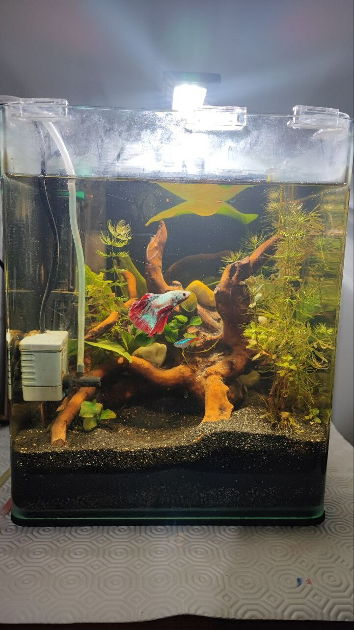 Zamostyani 0 Жалоба Опубликовано 4 апреля Всем привет! Новичок, завела себе 6 неонов и петушка. Двое неонов умерли еще на карантине, видимо от аммиака, осталось 4, в аквариуме заняли по углу и защищают. Не живут стайкой, дерутся друг с другом за территорию. Петушок у меня очень спокойный, их не гоняет, но кажется, что ему некомфортно что все углы аквариума заняты. Как померить их не знаю. Подскажите пожалуйста, что с неонами делать. 1. Аквариум Nano Cube (свет, грунт и фильтр в комплекте были, добрала только аэратор и нагреватель). Аэратор, кстати, дозволь уверенно бьёт, включаю его только на ночь. Свет включая вечером часов на 4-6. 2. Объем аквариума: 30 литров 3. Запущен 1.02.2025, потом 22.03.2025 были добавлены растения и коряга 4. Растения: не знаю, их много, приложу фото. 5. Грунт: Deponit Mix Pro Black. With black gravel as a top layer (из описания аквариума) 6. Животность: 4 неона и 1 петушок, заселились все вместе, сначала в аквариум для «карантина» через неделю в аквариум из анкеты (примерно 27.03.2205) 7. Кормление: два раза в день betta minipellets и base flakes от haquoss (на глаз через импровизированную кормушку, остатки забираю с кормушкой) 8. Подмена раз в неделю на 30 % 9. Параметры воды: t 22, dH не знаю , pH =7,2, NH4=0, NO2=0 , NO3=0-10 (мб где-то неправильно поняла тесты) Поделиться сообщением Ссылка на сообщение