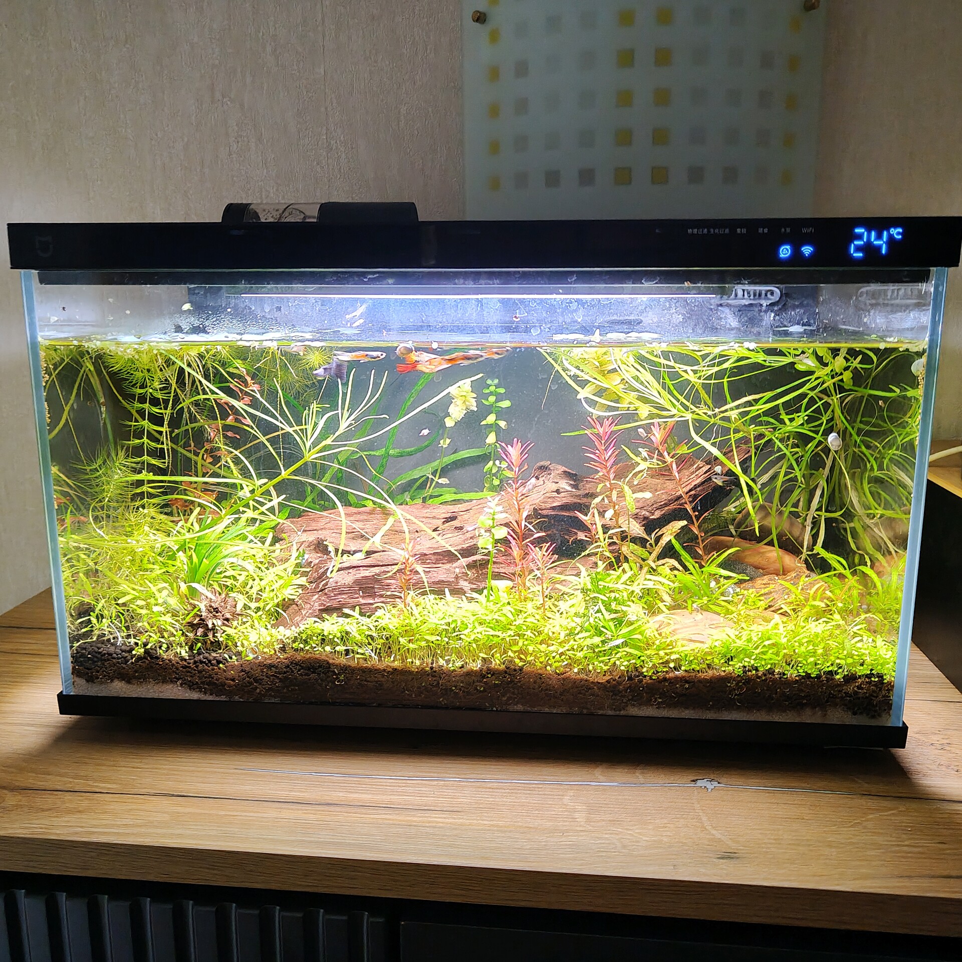 Аквариуман 57 Жалоба Опубликовано 14 апреля Еще много что посадил в аквариумы, двадцатка сейчас выглядит вот так: -фальшивку-почвопокровку продолжаю стричь - Ротала хорошо растёт, и увет крутой - Слева еще людвигию посадил, но там маленькая (еле видно её) А в нанокубике поскольку он глубокий досточно, поставил лампу сильно мощнее (15Вт против 6, что была). Планирую сильно растения растить, потому что вскоре буду запускать еще на 70 аквариум, надо туда повыращивать растений. Соил конечно очень круто даёт буст для роста, то есть прямо видно что Xiaomi хорош тем что света там прямо очень хватает, но вот даже по цвету роталы видно насыщенному как напитаны растения, ну и можете сравнить вот рост за пять ней той же роталы. А в нанокуб заселил 6 галактик, малюсеньких малюсеньких нашёл, чуть больше сантиметра, будут расти на глазах) 2 Nevidimka и AnaAna отреагировали на это Поделиться сообщением Ссылка на сообщение