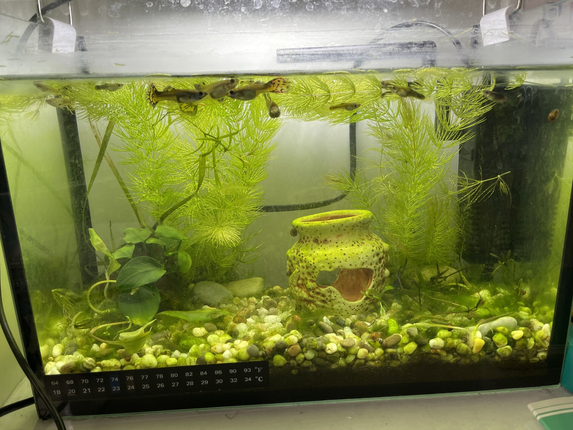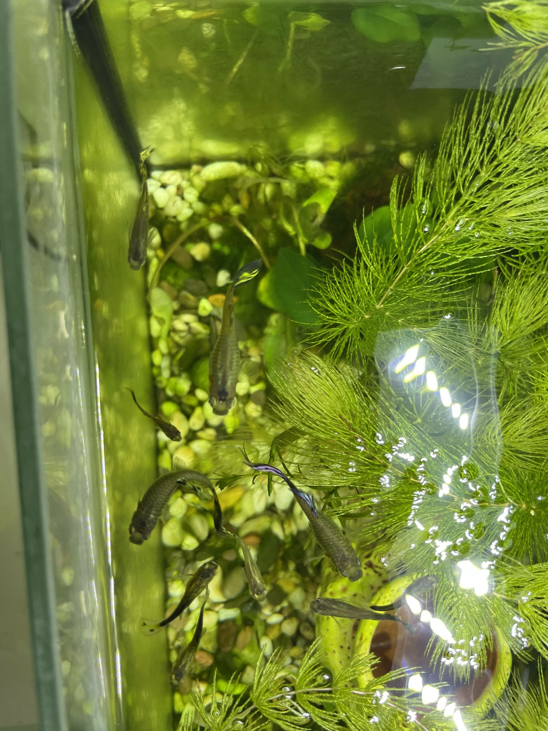 Ксюми 0 Жалоба Опубликовано 18 апреля Здравствуйте! Аквариум 7 литров, запущен в октябре. из растений роголистник и ещё какие-то, улитки. температура воды 22-23 градуса маленький фильтр. освещение 6-8 часов. через 1,5 месяца запущены домашние гуппи, куплены с рук. подмены 20% через 1-2 дня. Кормлю 6 дней и 1 выходной до конца февраля 2025 все было хорошо растения разрастались, рыбки чувствовали себя хорошо. потом появились водоросли, убрала освещение, стала пользоваться Vladox против водорослей. Водоросли почти пропали, но тут заболел один самец: постепенное похудение приблизительно в течение 2 недель и гибель. Vladox убрала, подсветку вернула, водоросли опять поперли. через месяц история повторилась. В итоге к сегодняшнему моменту интервал гибели рыб уменьшается, погибло уже 5 рыбок, в основном гибнут самцы. Сейчас заметила, что улитки тоже стали погибать. роголистник превратился в обглоданные палки, то что на фото, это новая посадка, неделю назад в начале, когда еще было хорошо отсаживала мальков, мальки в отаднике растут хорошо, не гибнут. в марте докупила еще домашних гуппи, они еще быстрее стали погибать. На фото у многих гуппи признаки начинающегося истощения, хотя в начале все были упитанные. Давали Мальков, они тоже отсажены и живы. Может ли это быть туберкулез? Или что это? Как лечить? тестеры заказала и цеолит, вдруг перекос баланса Поделиться сообщением Ссылка на сообщение