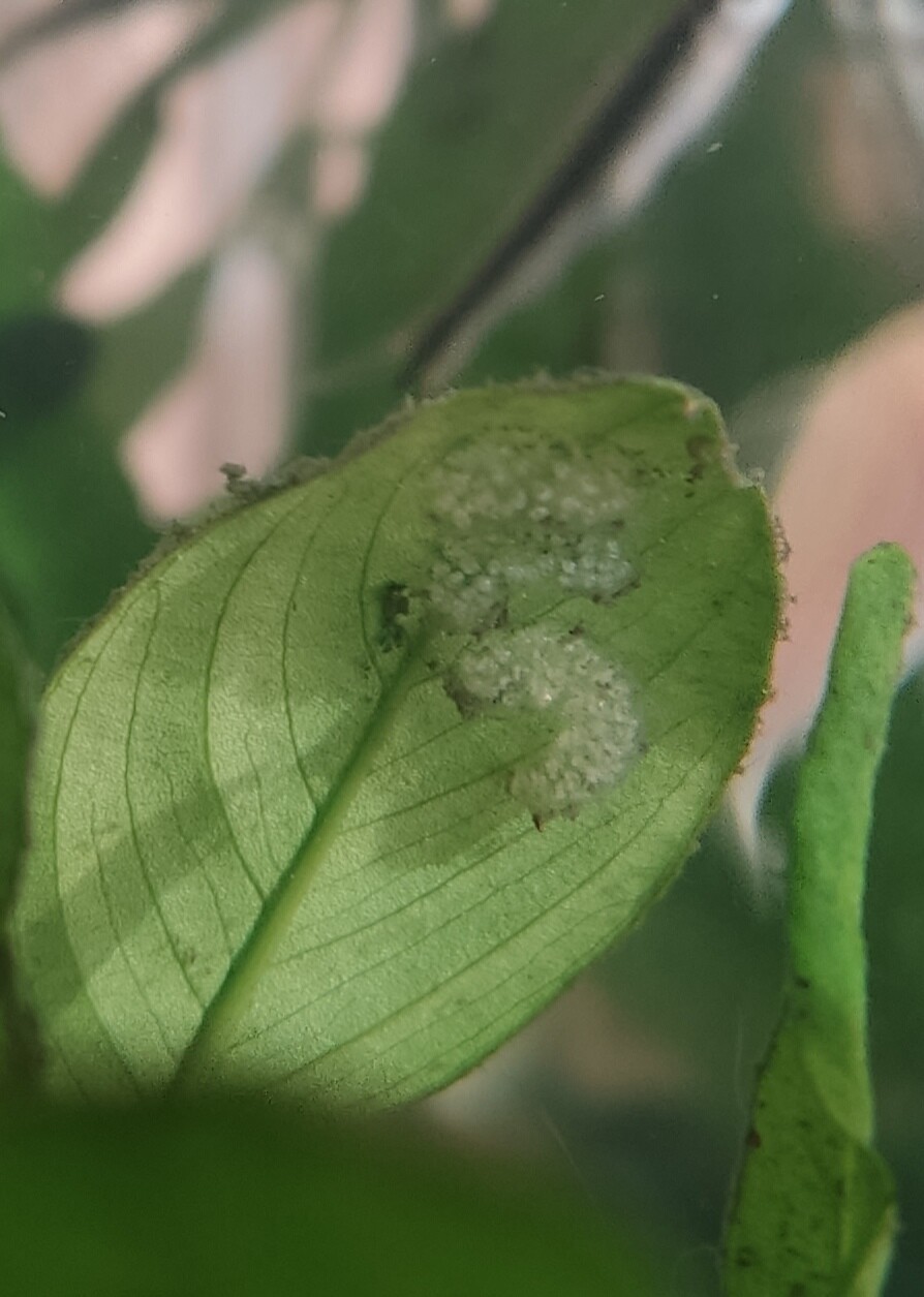 С растением в аквариум прибыла икра ,может кто то знает кто это может быть?