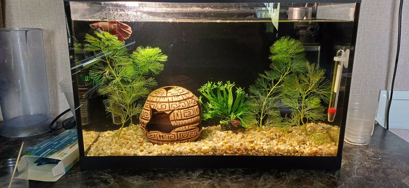 Ангелина32 0 Жалоба Опубликовано 7 мая Всем доброго времени суток! 1. Каков объем аквариума, сколько литров - 15 литров (с учетом содержимого - литров 13) 2. Когда запущен аквариум, когда вы залили в него воду, когда запустили в воду рыбку - аквариум запущен 26 апреля, залила туда отстоянную неделю воду, запустила туда петуха через интервалы (заливала часть воды из аквариума в 6-литровую банку, ждала по 15 минут и так раза 4). Ранее он неделю жил в этой емкости 6-литровой, ждал новую жилплощадь 3. Есть ли живые растения, какие. Какой грунт - Кабомба 3 ветки, папоротник "оленьи рога", грунт - кварцевая крошка, фракция 3-5 мм 4. Кто еще живет с вашим петушком: рыбки, улитки, креветки. Болел ли кто-нибудь из них, чем? - никого нет 5. Частота и объем подмен воды, какой установлен фильтр (сколько л/ч прокачивает), есть ли аэратор - 1 раз/неделя, 25-30% отстоянной воды (неделя). Фильтр Silver Berg Bio World 400 (4 Вт), есть аэратор, но петуха сильно сносило, убрала. Есть также обогреватель, поддерживает постоянную температуру 26-27 градусов 6. Параметры воды: t - 26-27 градусов, по данным тест-полоски dH - 0, pH - 7,2, NH4 - не знаю, данного параметра нет, NO2 - 0, NO3 - 10 мг/л 7. Какие симптомы заболевания, когда обнаружены, какие меры лечения принимались, что добавляли (включая кондиционеры для воды): Петуха купили не так давно, 21 апреля. Первое время жил в -литровой емкости. Потом переселила его в просторный аквариум, как писала выше. В субботу, 03 мая, меняла воду, также 25-30% отстоянной воды, но при этом отходов петуха я не заметила, задний проход при этом был полный. Меня это насторожило, но знакомые сказали "Не переживай, он ходит в туалет, при тебе стесняется". При этом аппетит у Петьки был всегда хороший, кормила его кормом для петухов Betta Granules 1 раз в день, как мне сказали в магазине, по 5-6 гранул. В понедельник заметила, что у петуха раздулось брюшко, не сильно, но заметно. Плюс чуть позже его начало выталкивать на поверхность, он всеми силами старался удержать себя в ровном положении, потому что его заваливало на бок. Перечитала кучу статей, приняла решение о его лечении. С понедельника не кормила, но за это время он так и не сходил в туалет. И наполненный задний проход почему-то хорошо выделяется только с одной стороны. Плюс подключила Метронидазол 250 мг на 10 литров воды. После него петух смог нормально плавать, его больше не выносило на поверхность в этот день. На следующий день уже ближе ко времени внесения второй дозы его снова начало выносить на поверхность. После подмены воды 10% и внесения второй дозы ему снова стало легче. Сегодня также не кормила, в обед третья доза. Но я переживаю, что он так и не сходил в туалет. Купила также ципрофлоксацин. Но не знаю, давать ему или не стоит В целом чешуя не ерошится, белых пятен вроде нет (на фото отблики от телефона). Поделиться сообщением Ссылка на сообщение