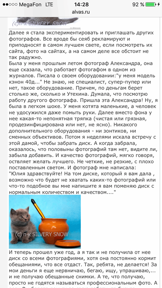 Гость Esta Жалоба Опубликовано 3 июля, 2016 Приглашать фотографа не вариант. Котята не собака, в стойку командой не поставишь. Снимать ориенталов труднее, чем обычных котят. Вся их прелесть в ушах. Снять красиво их тоже уметь надо. Сама на айфон снимаю дома. Для себя. Но, для покупателей такие фото не пойдут. Откройте эти фотки на компе. И все поймёте. Заинтересовалась этим фотиком. Модель не новая, отзывы хорошие. Объектив не китовый с ним продаётся. Одно Но - авито , риск ! Поделиться сообщением Ссылка на сообщение