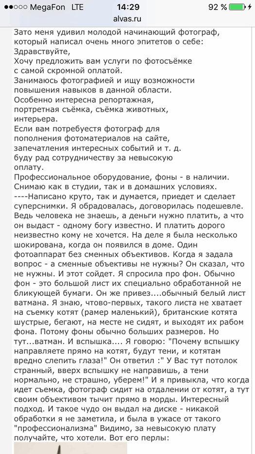 Ника 8959 Жалоба Опубликовано 4 июля, 2016 Имхо, это вполне нормальная стоимость. Фотограф берет за свою работу, опыт и квалификацию. Оборудование у него тоже недешевое. Кроме собственно съемки, он еще после фотосессии с полученным материалом работает. Как минимум, выравнивает свет и цвет. Как максимум, еще в фотошопе обрабатывает. Это услуга. Как консультация юриста, или процедура у косметолога Я несколько раз заказывала фотосессии, себе, не котам))) Нужны были хорошие портреты для сайта. Тоже по 5-10 т.р. платила. Другой вопрос, нужно ли это. Или действительно проще купить фотик и снимать самостоятельно. Вопрос целей и задач Как вариант, найти фотографа новичка-энтузиаста, он за символическую сумму сделает фотосессию, ради опыта и портфолио. Поделиться сообщением Ссылка на сообщение