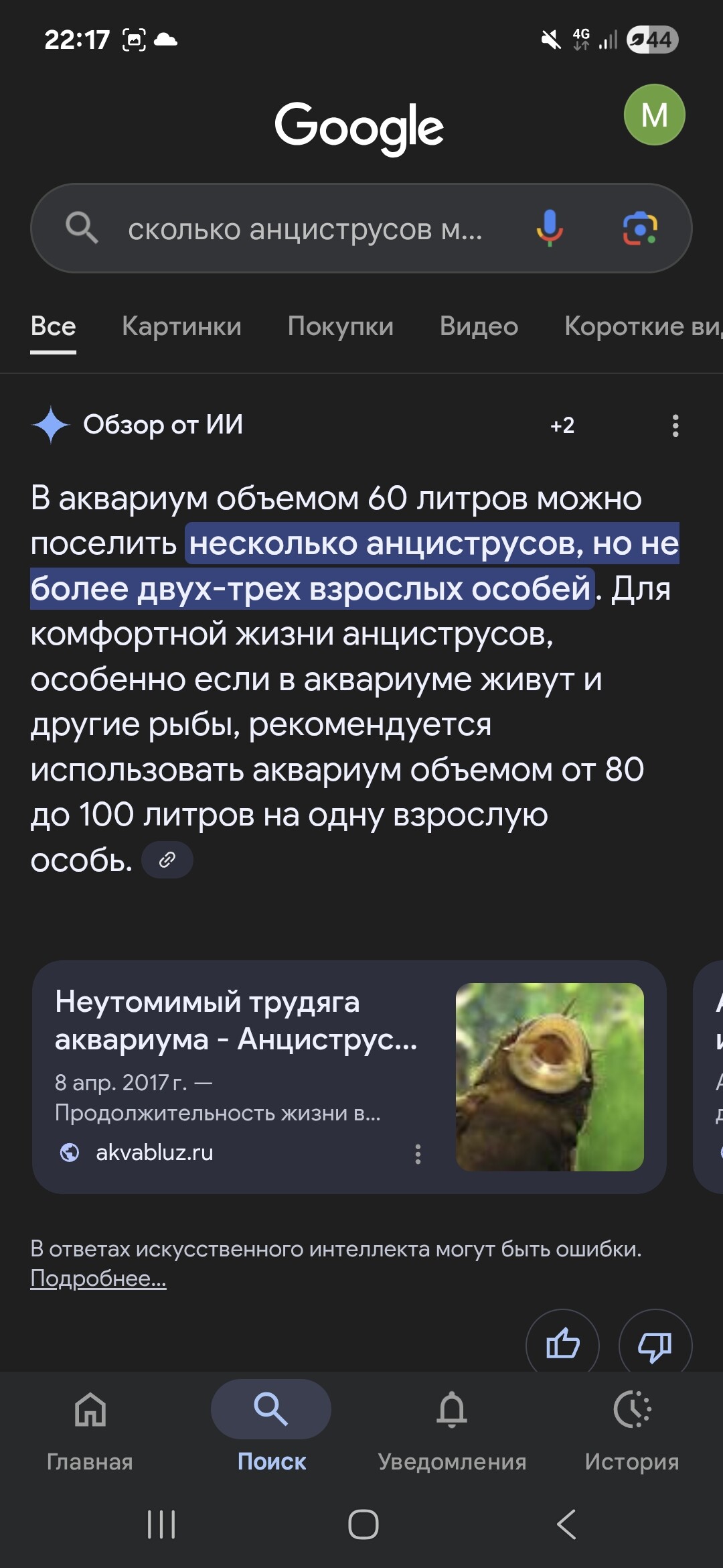 Волька_ибн_А 6898 Жалоба Опубликовано 4 июня @GlintveiN но вы же умеете читать? Вы же видите самую первую строку - ОБЗОР ОТ ИИ. Или вы верите, что он хоть и искусственный, но таки интеллект?? Повторюсь - анцам требуется не пространство для плавания. При грамотной фильтрации и регулярном отведении лишних нитрАтов/фосфатов, можете хоть десяток анцей в свой акв воткнуть (только чтоб каждому была своя шхерка-норка). Анцам требуется чистая вода. И вот тут-то и оказывается, что 50литров на хвост - минималка для этих зас₽@нцев, для большинства аквариумистов (подмены жерез ж., растения через ж., общее содержание также - ректальное, т.е.через ж. ) 1 Пятница отреагировали на это Поделиться сообщением Ссылка на сообщение