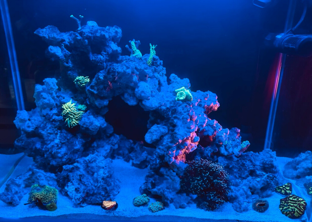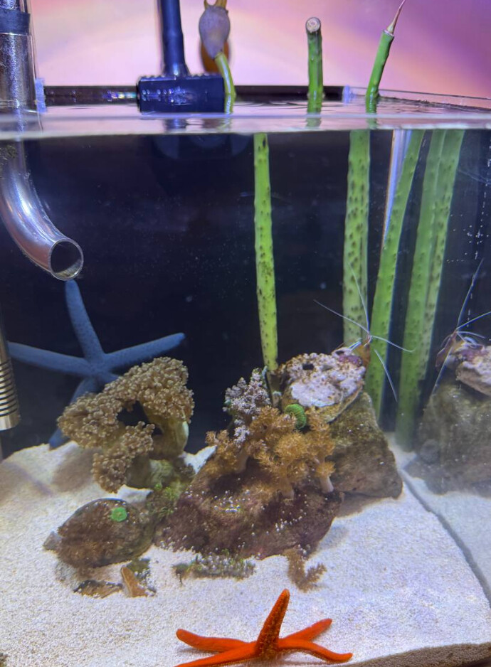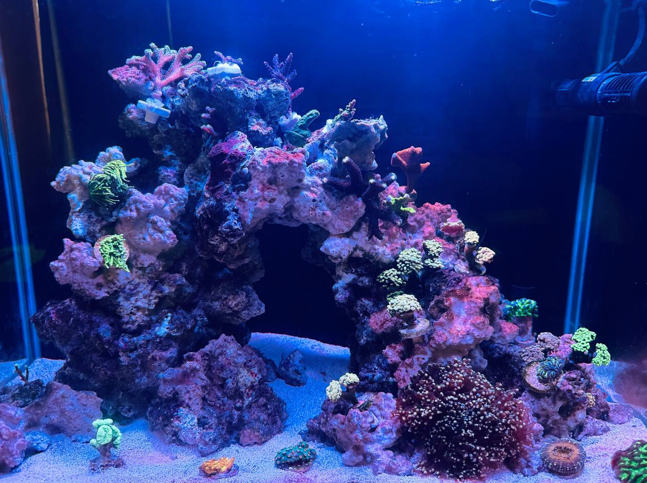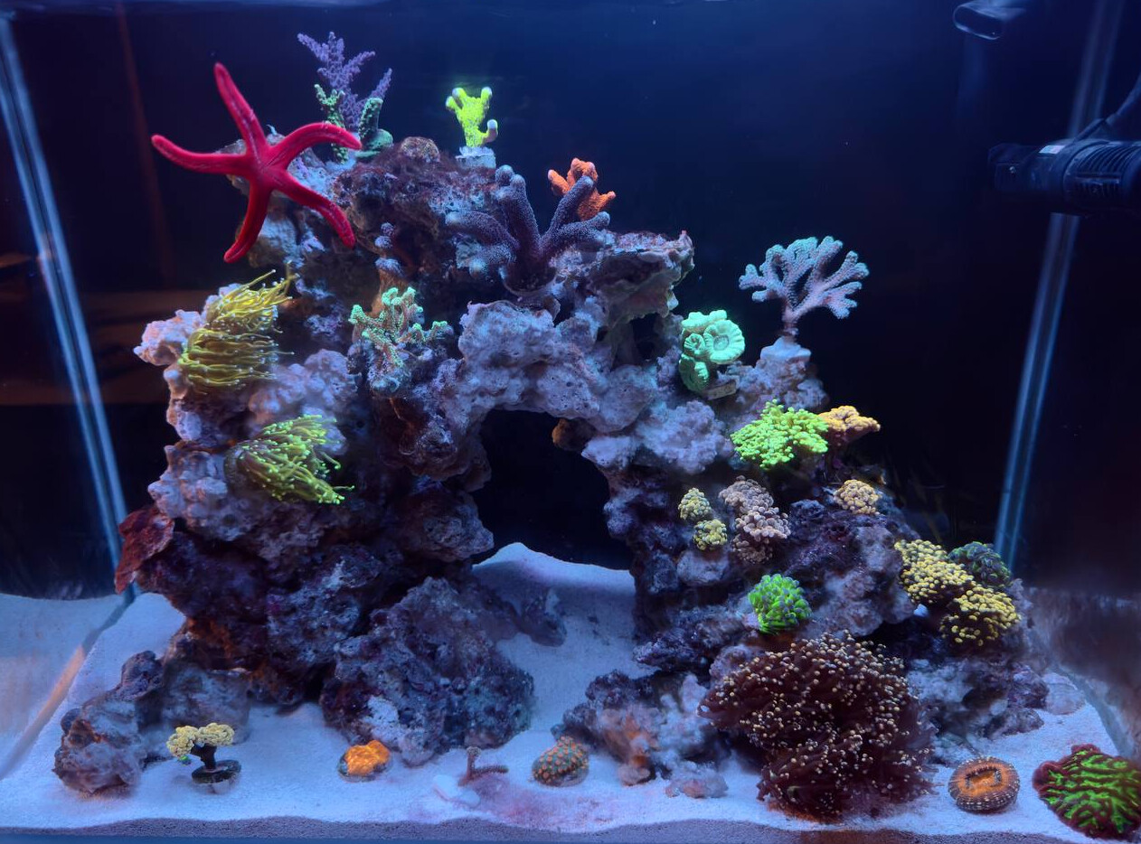 Idzumi 1782 Жалоба Опубликовано 14 июля Этап становления биологии в самом разгаре: где-то немного диатомы, где-то нитка, где-то локальный очаг циано. Все хорошо и идет по плану, все кораллы чувствуют себя хорошо и пушатся. Кораллы начали подъедать кальций и магний, значит пошел рост. Где-то в камнях сидит креветка-боксер и рыбс: фоткаться не любят. С засолки прошло 1.5 мес, подмен не делала. Нитрат с помощью фитопланктона опустила до 5 9 1 Nevidimka, Камень, Пятница и 7 люди отреагировали на это Поделиться сообщением Ссылка на сообщение