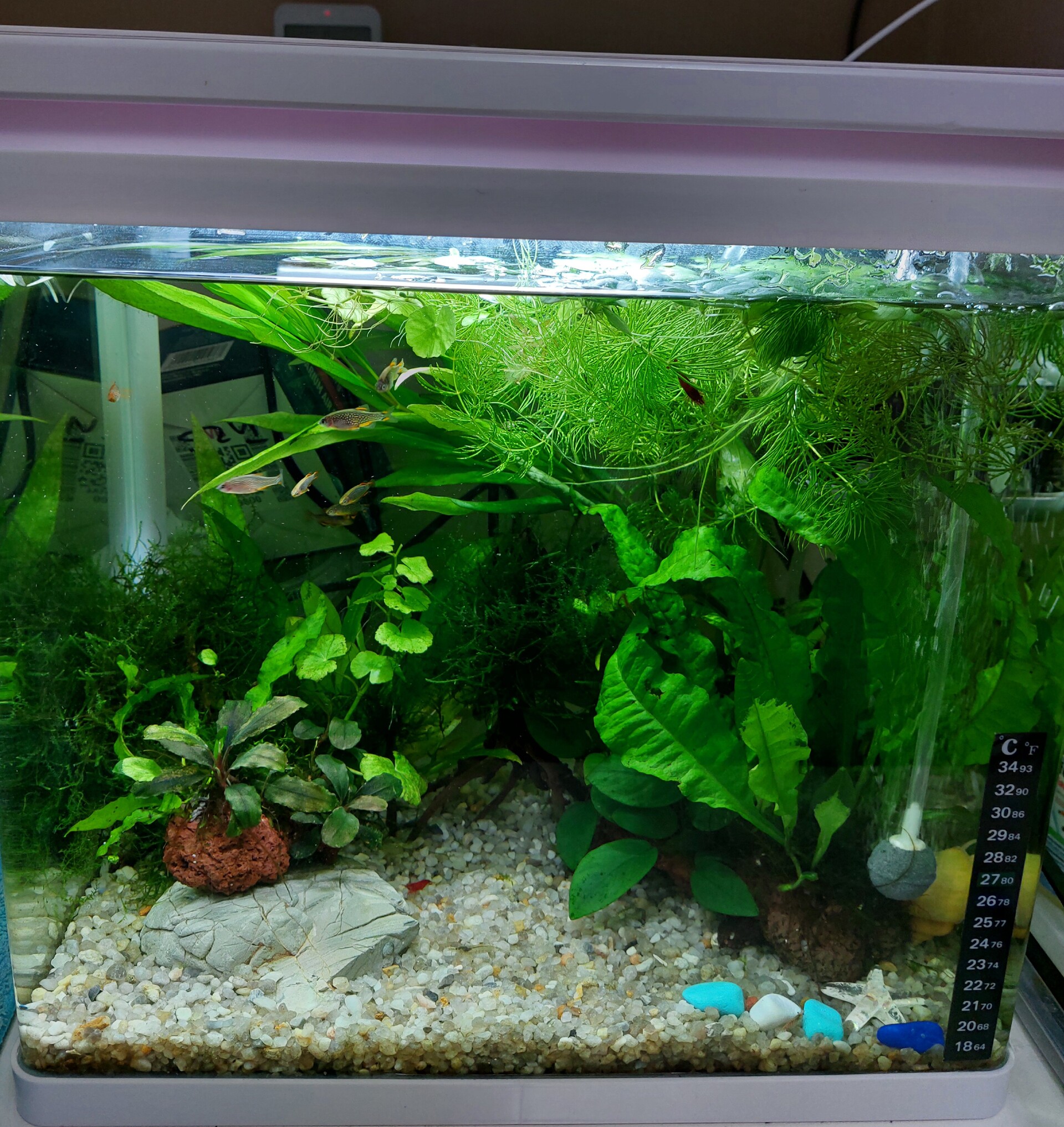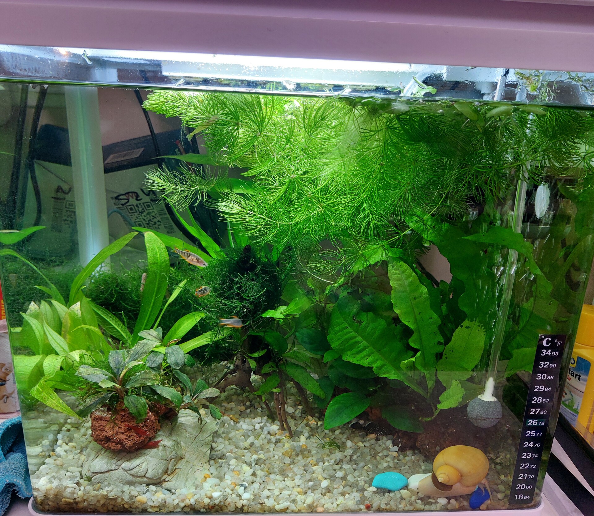 Василиса 191 Жалоба Опубликовано 10 июля Ой жара..жара пришла.. Вчера прихожу домой, а в аквариуме вода +29 % , живность как в вакууме сидит.. 50 % воды слила, а потом постепенно добавляла прохладную водичку, и в течение часа вода опустилась до обычных +25% Вот сегодня кондиционер с утра включила и ушла...За окном сейчас в тени +32...Без включенного кондера дома, в аквариуме бы ,точно к вечеру ,получилась уха Такой маленький объем оочень быстро нагревается... Поделиться сообщением Ссылка на сообщение