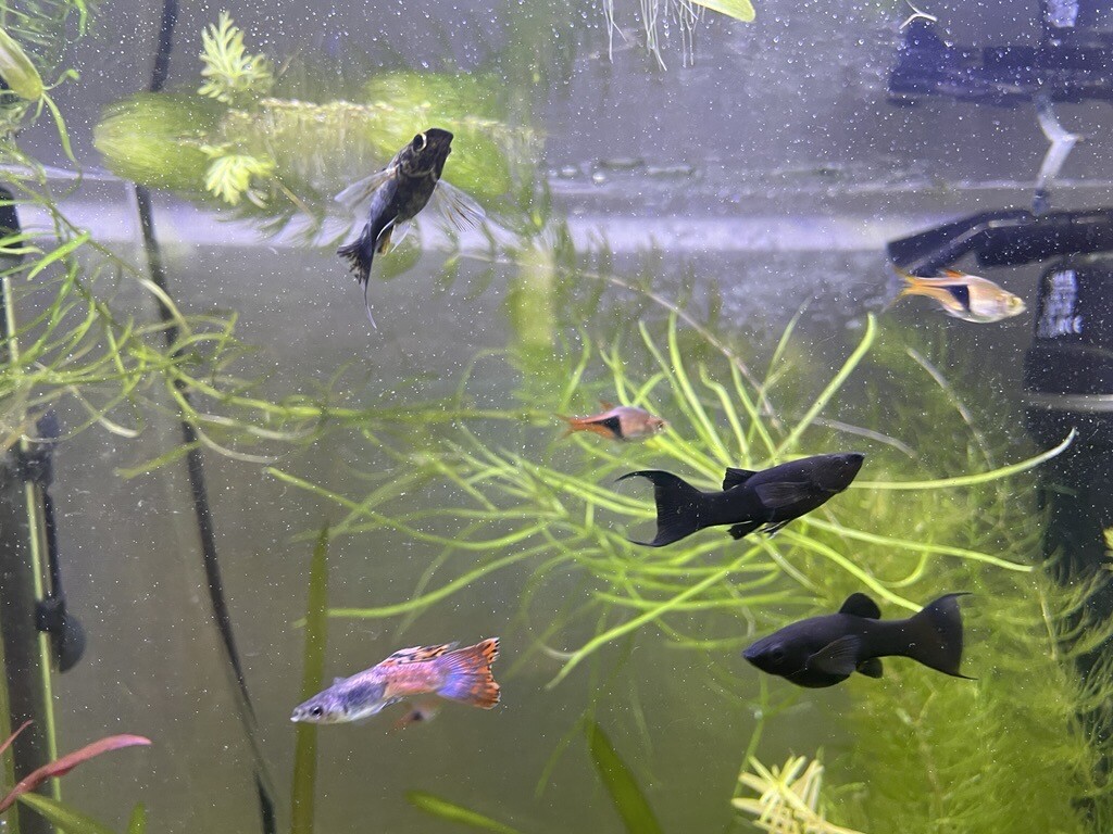 yaksenya 20 Жалоба Опубликовано 29 октября Нужен опытный взгляд... у меня есть несколько моллинезий, всех брала одновременно, все были одного размера, но сейчас это стадо коней, в которое случайно попала одна тощая селедка... Вроде они одинаково едят, плавают и тд, в чем может быть причина "худобы"? Думаю, на фото примерно понятна разница между двумя черными рыбами.... Мраморной молли (сверху на фото) самец откусил часть лиры, подлец гоняет ее по всей акве, она убегает прячется в кусты... отсадить особо некуда, в 30ке сидят мальки, в 17ке петух, в теории можно засунуть мальков обратно в отсадник, а молли в 30ку (но мне кажется там совсем будет грустно в тесноте) , да и кого из них отсаживать, жертву или агрессора? Поделиться сообщением Ссылка на сообщение