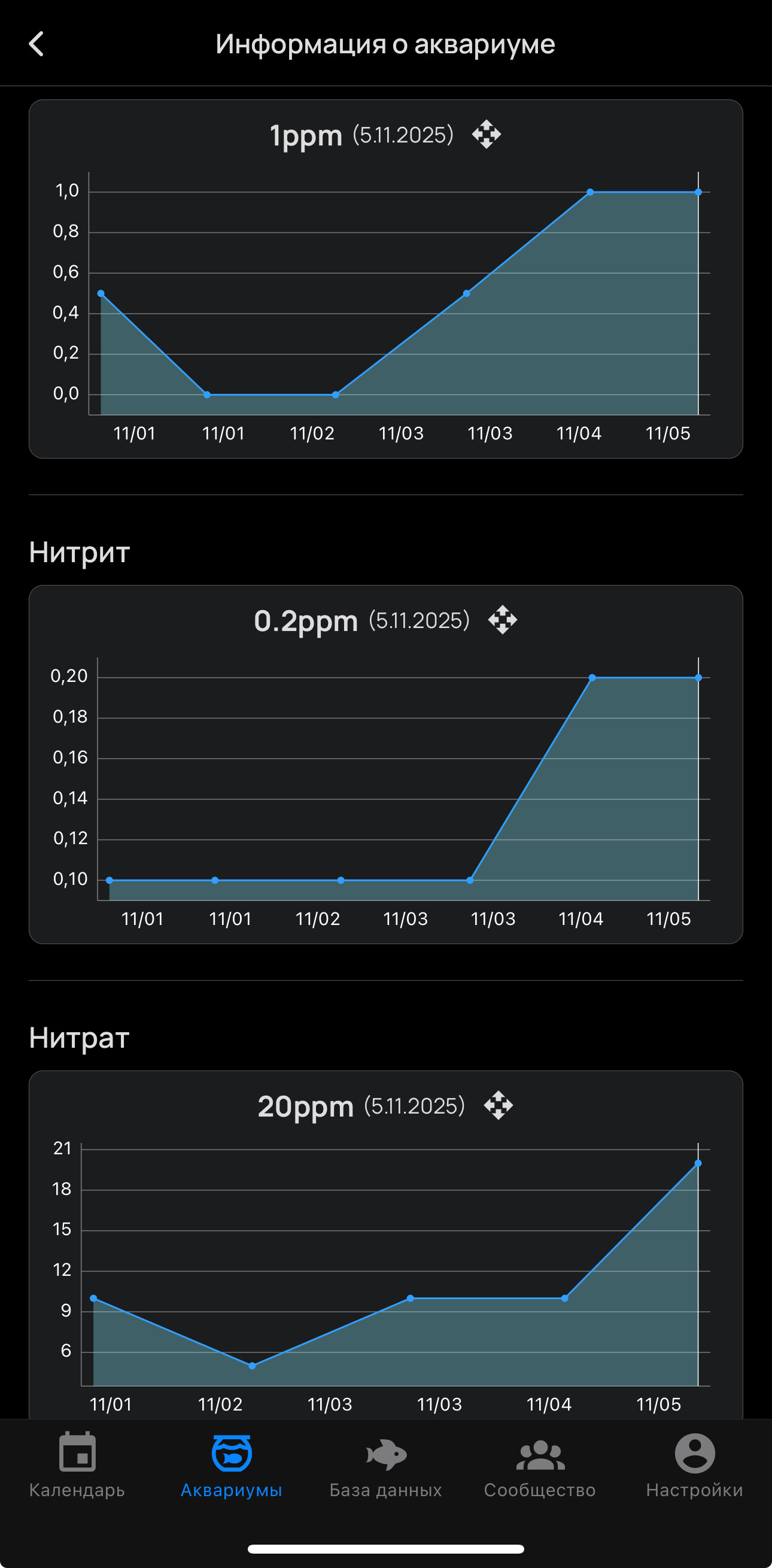 Коррунд 161 Жалоба Опубликовано 1 ноября смотрю я на этот график и понять не могу сегодня 4 день как в аквариум впервые попала вода, аммоний должен только разгонятся а он у меня в 0 ушел. Это затишье перед бурей? ампулу всетаки добавлю перед заселением рыб, когда нитриты тоже 0 покажут, а пока посмотрю как дальше будет цикл налажитвася. Для меня такое впервые, с тестами и размерено… обычно залил водопровод в аквариум, засыпал грунт и как муть осела пересадил рыб из пакетов у меня в планах 2 больших заселения - это неоны и эпиплатис факельный. Перед заселением первой стаи - помою губку фильтра старого аквариума в новом аквариуме, а перед заселением второй стаи добавлю ампулу. Остальные рыбы маленькими группками будут, думаю фильтр сможет и без добавок справится Поделиться сообщением Ссылка на сообщение