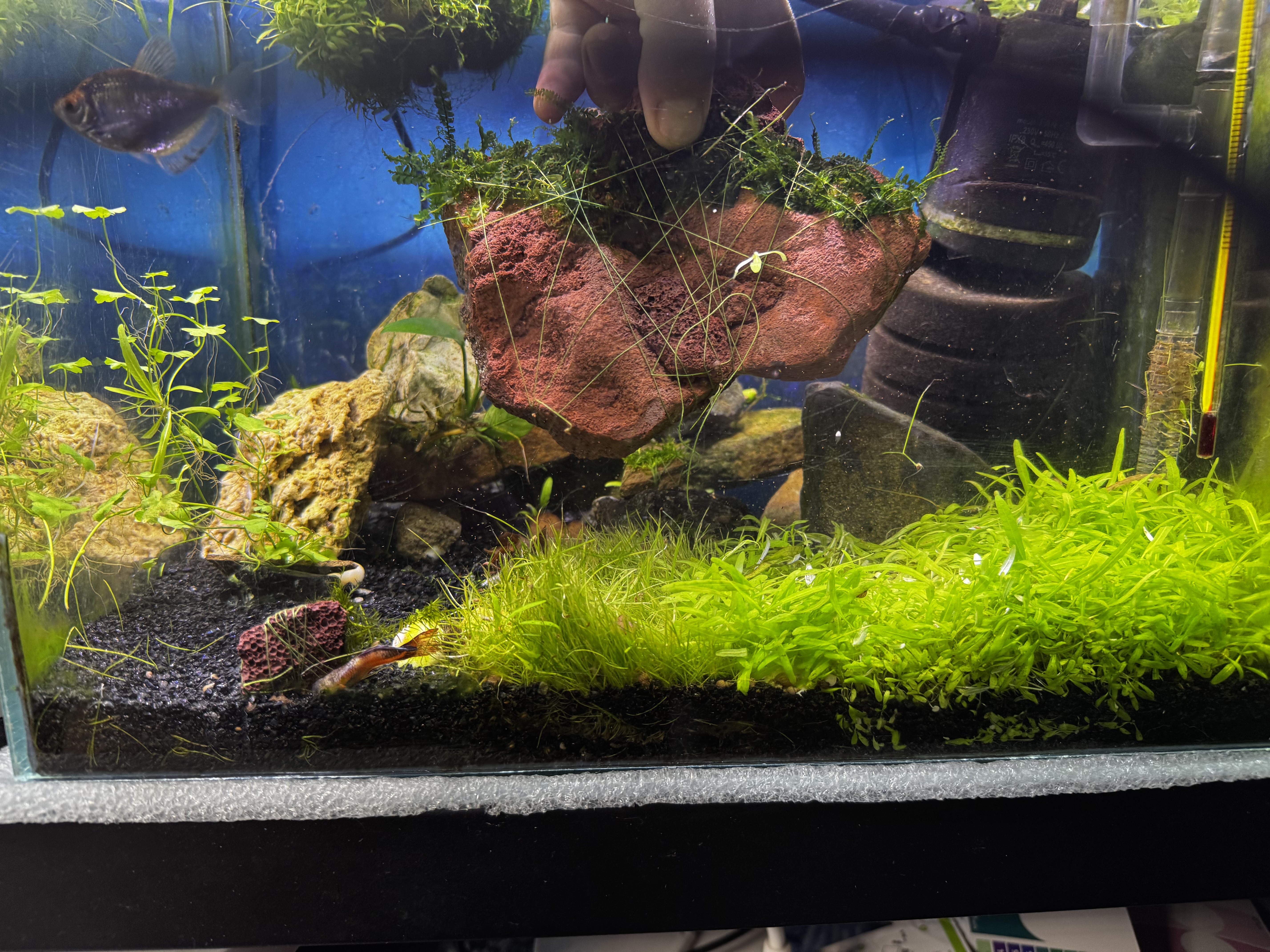 RazDva812 15 Жалоба Опубликовано 3 ноября Ну что, почти неделя с посадки семян, время для следующего коллажика + фото дна целиком. Продолжаю пшыкать смесью воды и вкусняшки, поддерживаю в банке около 30 градусов. Приехал дропчекер, но полистал я всякое, и как-то все еще не сильно уверен в полезности колокола, да и необходимости подачи со2 вообще. Кроме того, впервые увидел (да, давно не погружался во все это дело) вполне самостоятельные системы на мелких одноразовых баллончиках по 16 грамм, кто-нибудь юзал? Дозаказал йодинола и компрессорный шланг для колокола. Хотел заказать чемоданчик Нилпы, но нашел у себя тетравские полоски, на старте попробую с ними, уж сильные перекосы они точно покажут. Аэрацию не планирую, фильтра с флейтой должно хватать на такой объем. Поглядел рыбку, задумался за галактику, но чуть побоялся. Ей pH нужен 6,5-7,5, а неонам аж 5,5-8 (инфа из статей фф), то есть чуть больший разрыв очков просто меня успокаивает в плане лучшей выживаемости синих ребят, если я допущу ошибку. по растючкам к задней стенке решил добавить пару кустиков роталы, ну и какого-нибудь перистолистника или роголистника да ряски на первое время заброшу, потом уберу, но буду очень рад советам по зелени, если кто подскажет что-то простое, быстрорастущее и красивое Монте Карло решил бросить в десятку (которую тоже внезапно обнаружил в кладовке), чтоб не пропадало добро, да посадить туда тех же креветосов, а запускать на воде из домашней большой банки. Схема там примерно та же: лава, пропант, да камни с корягами. Висит рюкзачок от Aquael и свет от Prime, хоть и оффтоп, но фотку прикреплю, семена живые, прорастают и по темпу глоссостигме не уступают, будем смотреть как поведут себя после запуска. Не удивлюсь, если откопаю банки на 20 и 60 и тоже решу их запустить, получив тапком уже от жены. По ощущениям, следующий пост будет последним перед запуском, если такой темп роста сохранится, то заливаться буду уже в ср-чт (5-6.11). Ну и оффтопом поною, что ни торумина, ни того же витала нигде по норм ценам не вижу, а если и нахожу, то расстраиваюсь. В июне 2020 сотку витала брал за 310, 250мл торумина за 580. Да, находил более-менее приемлемое на озоне, но большего объема, а так много мне для кубика точно не надо, да и жаба душит. Буду пробовать йодинол и чай, но если с йодинолом более-менее все понятно, то вот с чаем не вижу ни дозировок, ни подходящих фирм, буду рад если кто поделится опытом. Такие дела, всем добра! @Ника Благодарю, почитаю 5 Ника, Nevidimka, AnaAna и 2 люди отреагировали на это Поделиться сообщением Ссылка на сообщение
