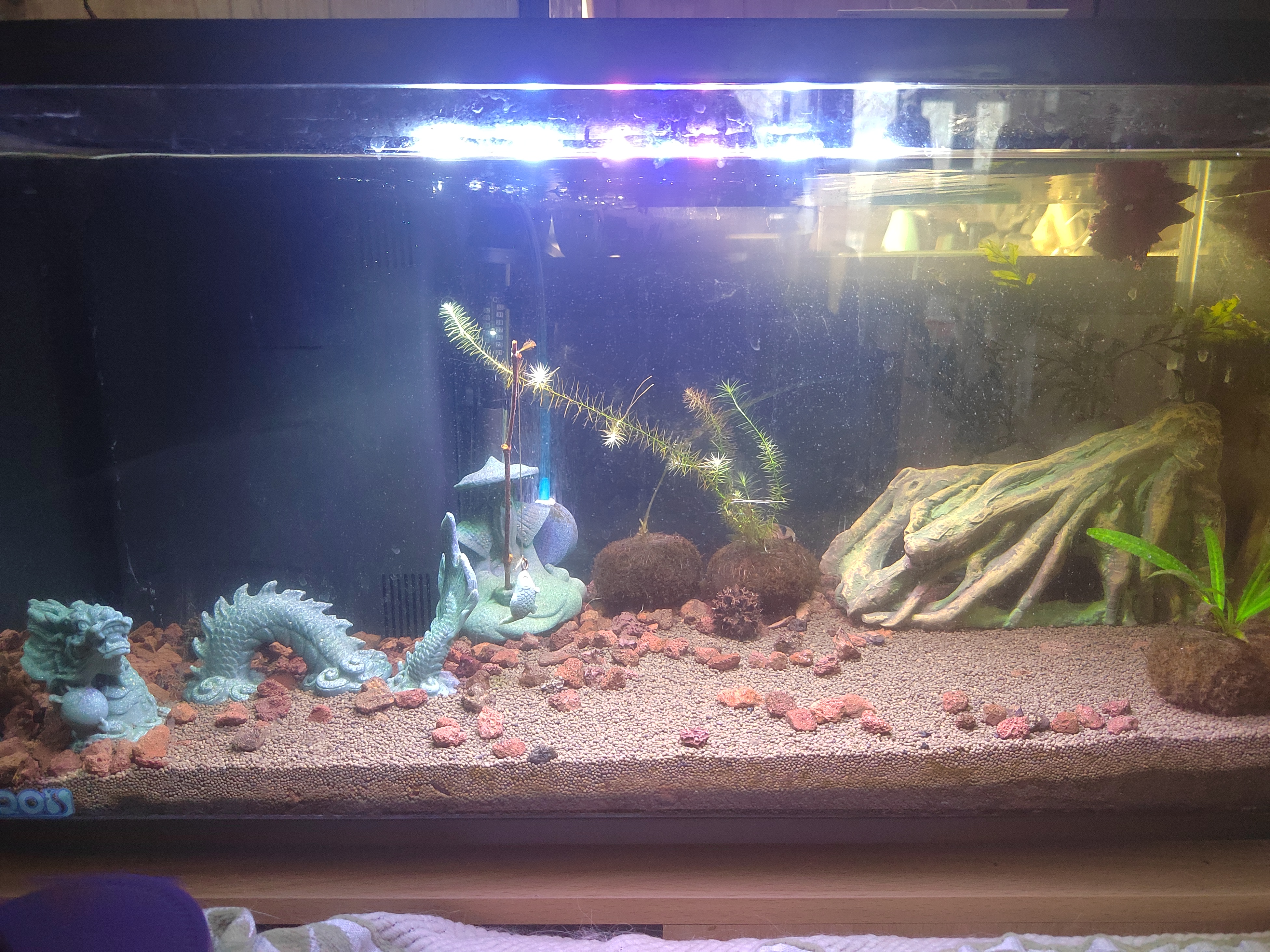 Sevven 0 Жалоба Опубликовано 3 ноября Добрый день Я новичок в аквариумном деле, но стараюсь изо всех сил Перечитала кучу подобных тем, но так и не пришла к какому-либо конкретному выводу что делать, поэтому прошу помощи. Петух уже несколько дней плавает у поверхности от одного угла к другому и периодически заваливается на бок. В целом держится вертикально, но видимо когда расслабляется то его кренит. Не полностью горизонтально, а под углом. Почти не плавает, изредка перемещается, реагирует на активность у стекла. Один раз видела что он пытался опуститься на дно, догреб до середины и его вытолкнуло обратно. Куплен в зоомагазине в начале июня 2025 года (то есть около 5 месяцев назад - первое фото) Сначала жил в кубике на 12л с фильтром, грелкой и аэрацией, но я немного не уследила и мы начали бороться с плавниковой гнилью, победили, плавники отрастают В середине сентября переехали в аквас побольше, в котором сейчас и живём (+ соседи 3 неретины, 5 коридорасов панд) всё было хорошо. Аквас стоял недели 2 без жителей, с добавлением биостарта от VladOx 30 л (сколько в действительности воды не могу прикинуть) Подмена через 5-7 дней около 6л. вода из проточного фильтра, 26 градусов Фильтр-помпа внутренний шел в комплекте с аквариумом (Китай) не могу сказать характеристики, но фильтрует хорошо: внутри губка, кольца и добавила синтепон Грунт лава(не потрудилась укрыть сеткой к сожалению, теперь вылезает) +пропант Немного грустных растений в кочках (в планах переделать, докупить ещё побольше) и 3 шишки амбры. О еде петуха: Были попытки кормить сушёной артемией, пастеризированным мясом артемии, мороженый мотыль - ничего не заинтересовало (выплевывал) это было во времена хорошего самочувствия. Так что на постоянной основе сухой корм Tetra Betta Larva Sticks Грешу, что перекормила, длинные палочки корма в банке закончились, начала сыпать крошками и побольше в колличестве, так как они быстро расплывались и тонули. Но кроме того где-то неделю назад заметила в аквариуме неприятных гостей: белые тонкие червячки, буквально 1мм длинной на стекле ползают, а их товарищи покрупнее до 5-7мм проплывают в толще воды и видимо в грунте окапались, так как были замечены при сифонке и когда поднялась муть при неаккуратной заливке свежей воды. К сожалению на фото запечатлеть не получается, слишком мелкие. Вычитала что это могут быть нематоды из-за остатков еды. Сомы действительно дербанили свои таблетки так что у меня появилась муть (поэтому положила синтепон в фильтр) и уменьшила порции корма. Вычитала что положительно может повлиять добавление соли: 2 дня назад внесла 2ч.л. пищевой морской соли без добавок, но не могу понять есть ли результат. В наличии есть капельные тесты воды. Периодически проверяю всё в пределах. Для этого поста не делала тест, так как добавила соль и не знаю влияет ли она или нет на результат (если не влияет и надо сделать для полноты картины - сделаю) Фотоснимки пациента Поделиться сообщением Ссылка на сообщение
