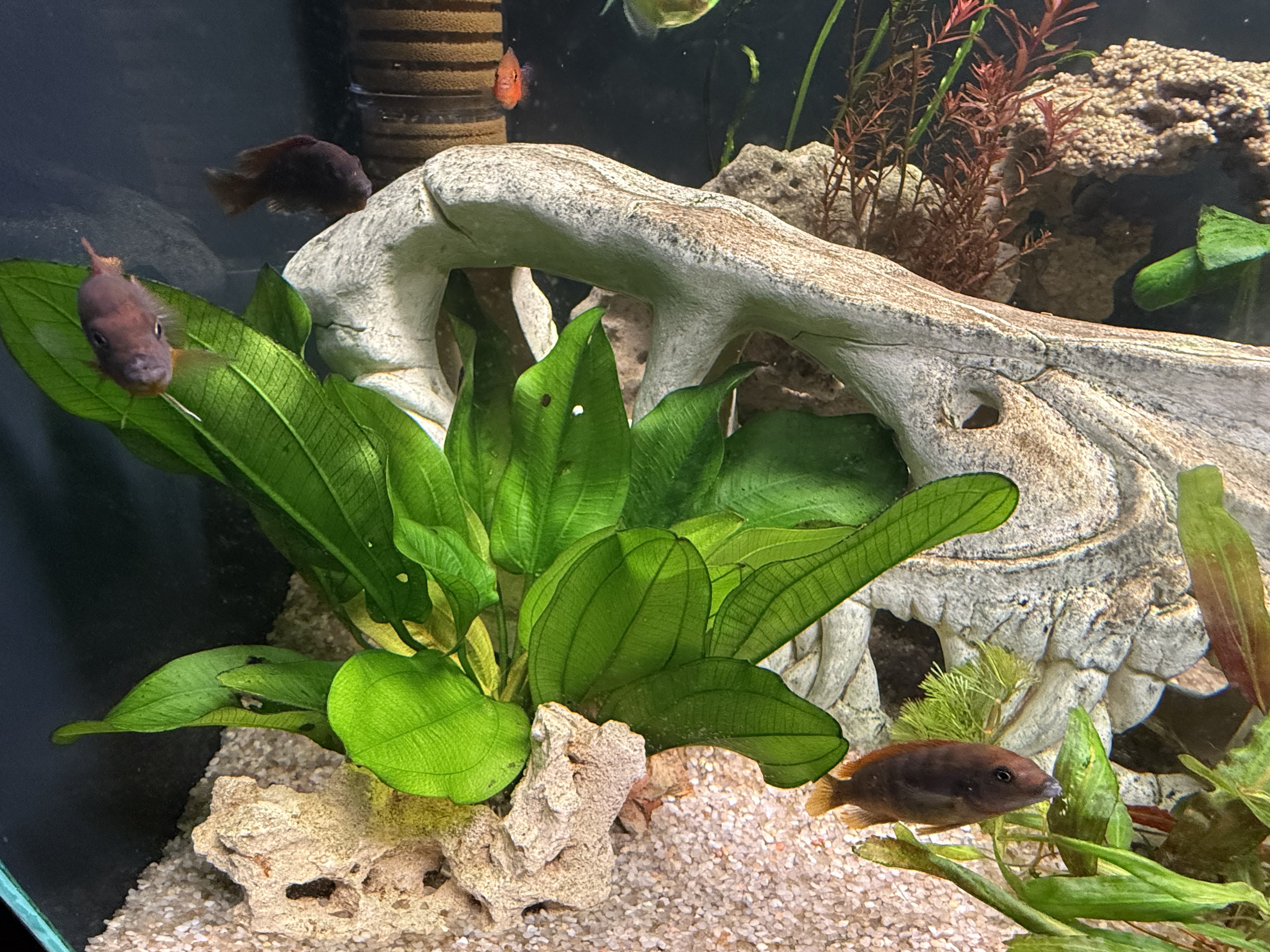 shkush 14991 Жалоба Опубликовано 5 января 1 час назад, Yuracmw сказал(а): Посоветуйте, как снизить количество нитратов и фосфатов в аквариуме? И что за налет и дырочки на листиках? Снижают нитрат и фосфат в цихлидниках в основном подменами, редко мутят фитофильтры. У вас собственно не критичные цифры по нитрату фосфат вообще норма. Ксен на анубах тоже норма если они на солнцепеке, их обычно в тень прячут(кроме вариегатных). Дырки не вижу если совсем мелкие как уколы обычно нехватка калия, крупные рваные или истертые население. Ануб хлорозит и это скорее железо, а не магний. Итог по желанию немного усилить подмены, спрятать анубы, лить при подменах калий 5-10мг на литр подменной воды, микро не более 0,1мг на литр подменной воды по железу, наблюдать за вредителями🙂. Поделиться сообщением Ссылка на сообщение
