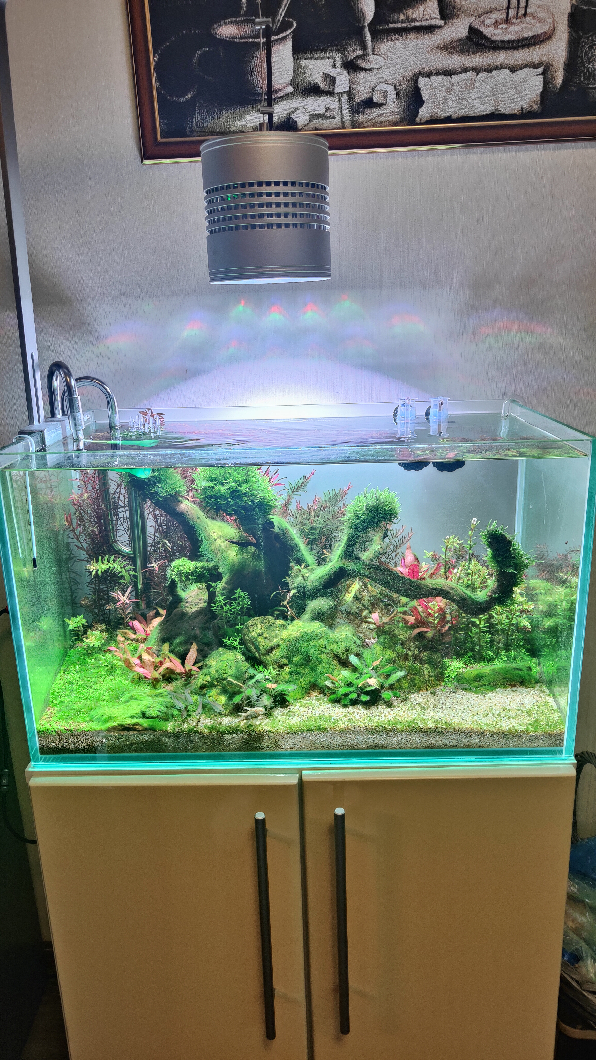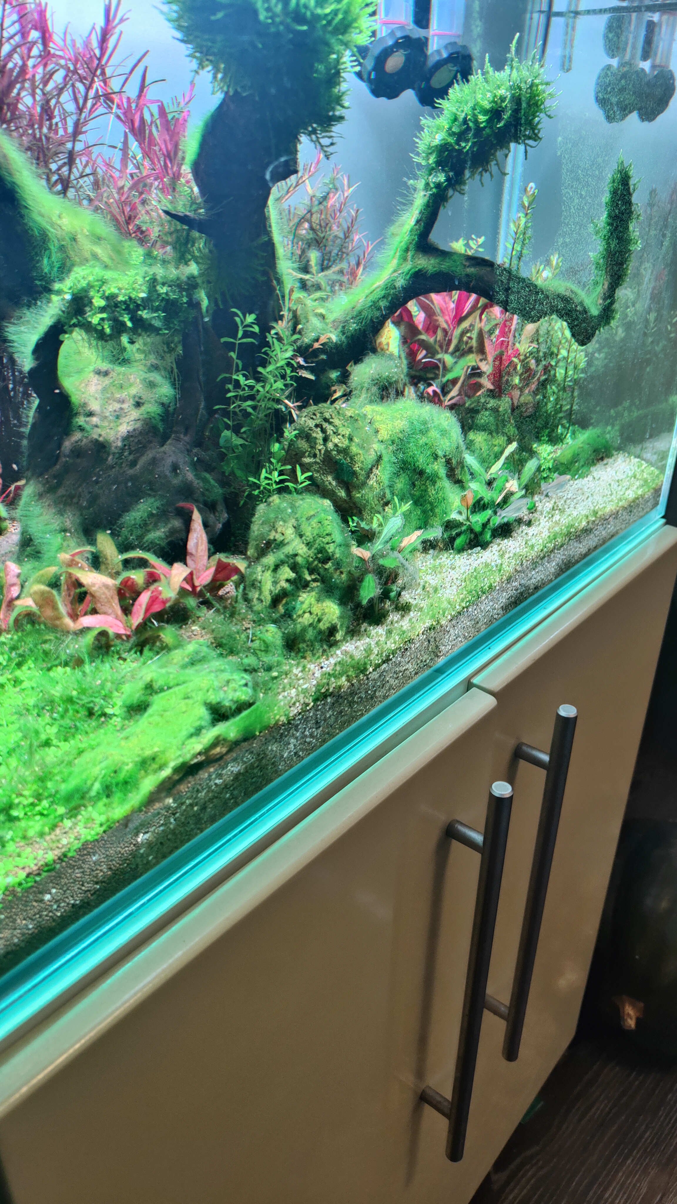 Свет Вик аква 90w был установлен в июне работает на 34%. Световой день утро 7-10 вечер 21-24. До этого стоял ледстар 42 w.