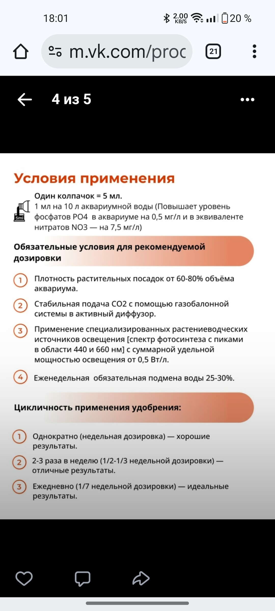 4. Макро и микро. Макро я бы рассчитал на объем воды в акве исходя из пропорции 1/12 (фосфат/нитрат) - недельная доза. Полученные миллилитры поделил на 7 и вносил каждый день 1/7 дозы. С микро - тоже самое. Только начал бы с минималки - 0.1 мг/л (тоже недельная доза).