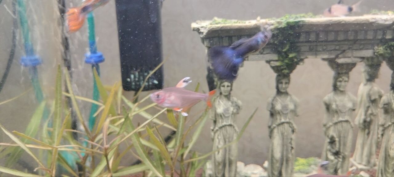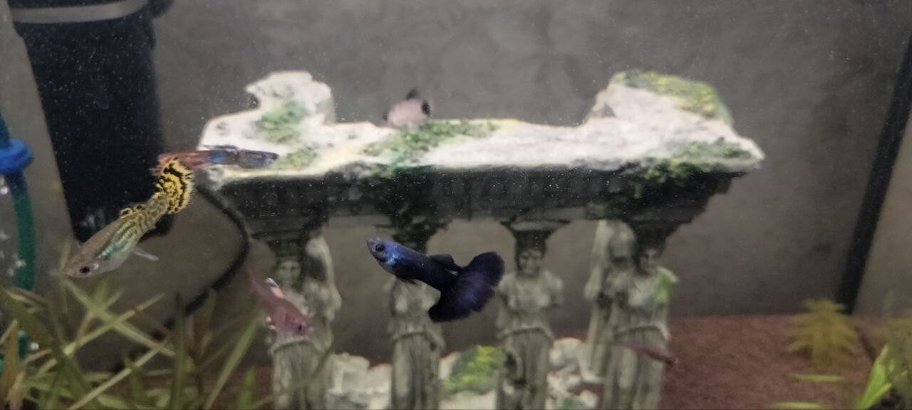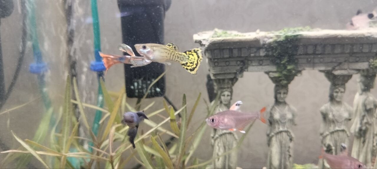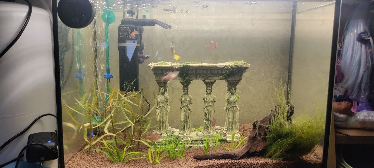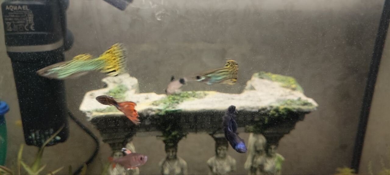 Karakulya 0 Жалоба Опубликовано 21 декабря, 2025 1. Объем аквариума 35 литров, запущен 16.11.2025, растения Гигрофила "Арагуайа", Мох прямой, сагиртария, роголистник. Грунт пропант. 2. Орнатусы 4, Гуппи 5( уже 4), коридорасы панды 3. Первыми были 2 гуппи и 2 орнатуса, после еще 4 гуппи и 3 орнатуса и 3 коридораса. Кормление: раз, два в день в неделю один разгрузочный: Хлопя, тетрамин гранулы и заморозка мотыль акваменю. 3. Раз в неделю, иногда приходилось и раз в день, обьем от частоты зависило, обычно литров 5-10, фильтр aquela 260л\ч 4. Параметры воды: t - 25-27, dH не известно, pH - 15, NH4 - 0, NO2 - 0.05, NO3 - <5. 5. Изначально после запуска недели через две заболели манкой, после того как подселили вторую партию рыб. лечили антипаром неделю, выздровели манка прошла, но подскочил амиаки и нитриты\нитраты, гуппи начали обкусывать роголистник да и впринципе все растния начали умирать, так же у некоторых орнатусов по момему началась плавниковая гниль и соответсвенно плавники начали отпадать, уменьшаться. воду меняли каждый день литров по 2-5 что бы приветсти в норму паказатели. Скончаплся один коридорас, без внешних признаков, как мне кажеться из за недокорма, так как кормили только хлопьями, а они вниз не падали, и т.д. Потом поместил активированый уголь в фильтр что бы убрать остатки лекарства, и подвесил цеолит в мешочке напротив течения фильтра, после того как лекарсто все ушло, убрал все растния, засадил новыми и докупил одного коридораса, амиак потихоньку начал уменьшаться а нитриты нитраты росли, в этот момент орнатусам нектороым стиало лучше, но парочка чувствовала себя не очень, один скончался, фото приложу второго в каком состоянии он был (не кушал) гуппи чувствовали себя хорошо, в какой то момент, неделю назад где то амиак ушел, а нитраты подскачили до 80, но все рыбки чувствовали себя на тот момент отлично, орантусов осталось 4, но выглядили все хорошо, все кушали, гуппи тоже. Пару дней назад, с утра в момент включения света. увидел что одна гуппи кртиться вертится на поверхности воды, как будто что то с плавательным пузырем, через минут 30 стало более менее лучше но начала плавать под углом в 45 градусов, сделал в этот день тесты, получились те что указаны в начале, после думаю послежу может стресс или еще что, на след день. у второй гуппи как будто согнулся позвоночник и появились белые пятна на голове, у орнатусов опять начали обрываться плавники, а первая гуппи вела себя точно так же как и в первый день (речь о темных гуппи, остьальные вроде пока нормально). Пока все кушают и ведут себя нормально за исключением первой гуппи, которую решил заморозить так как сегодня она вообще вертикально плавала весь день, и не было сил смотреть как она мучаеться. Поделиться сообщением Ссылка на сообщение