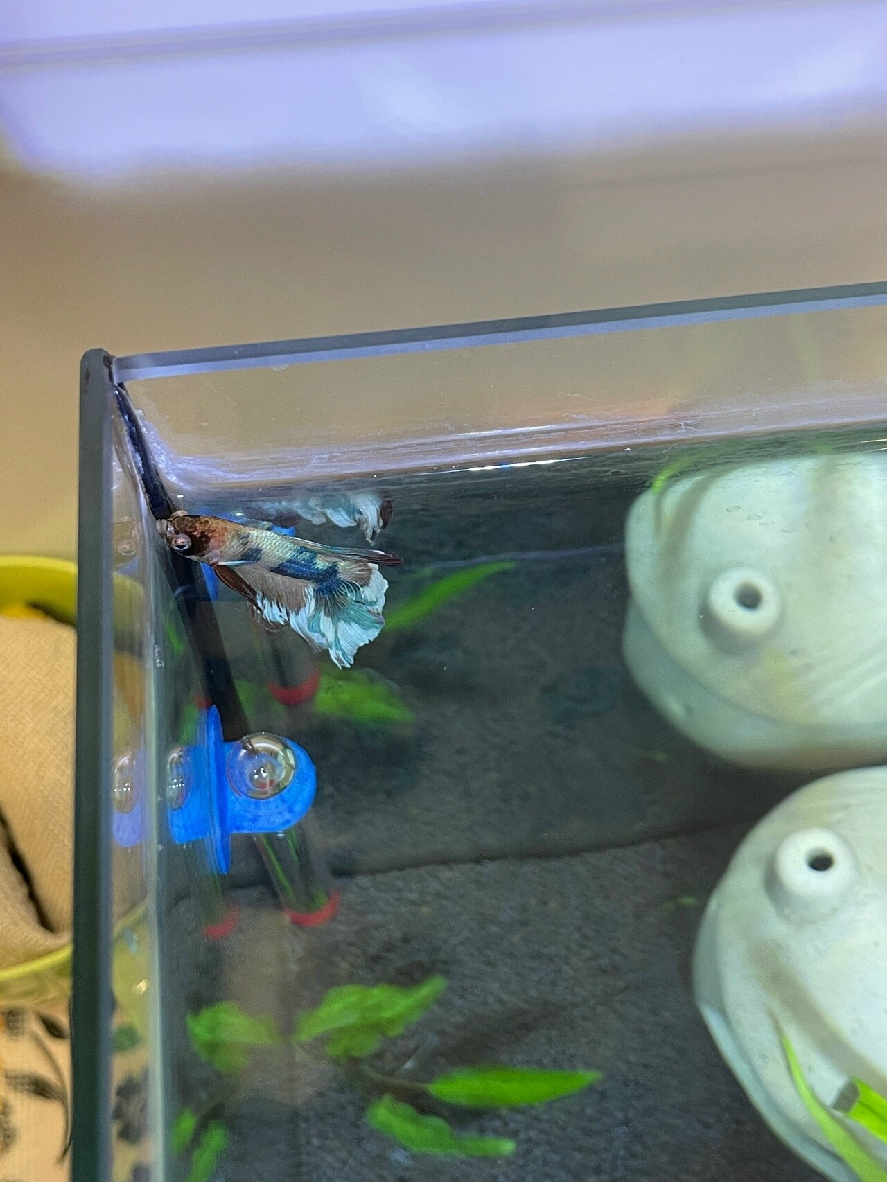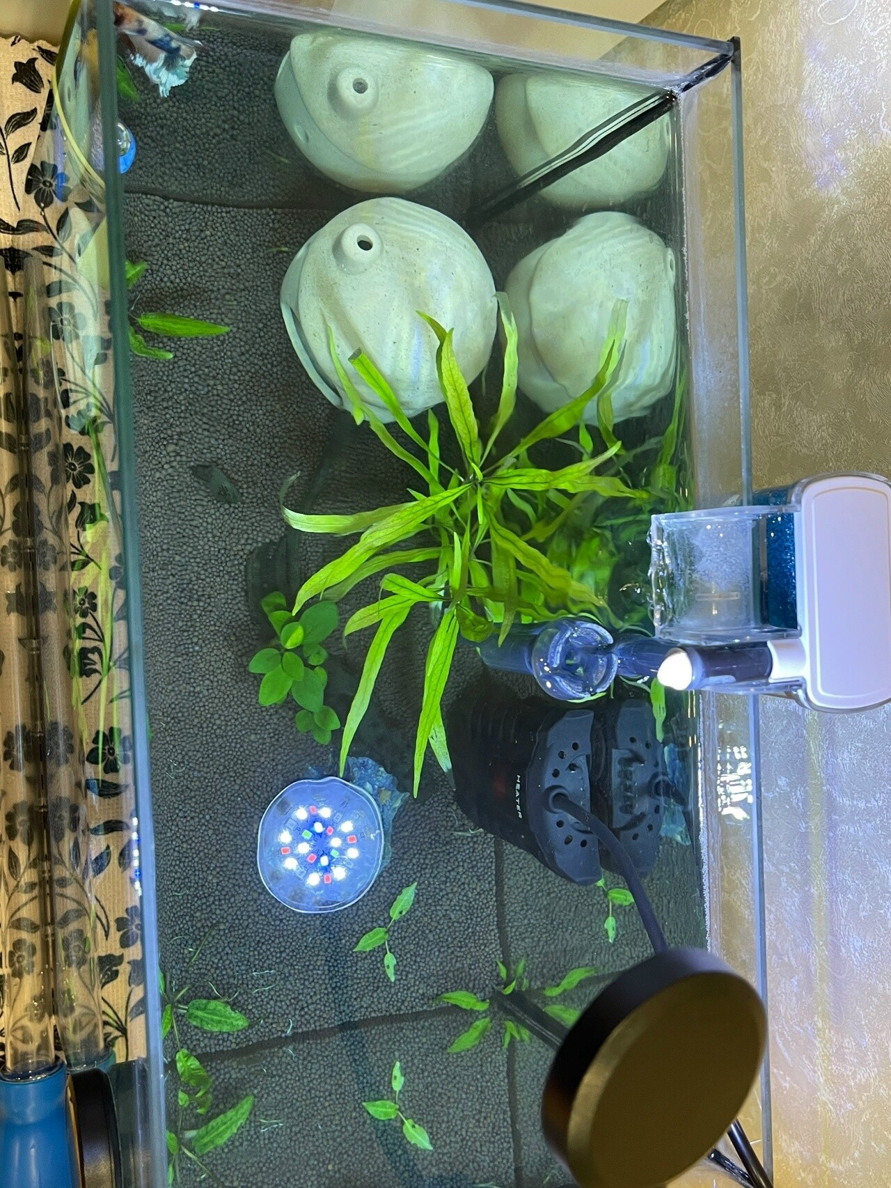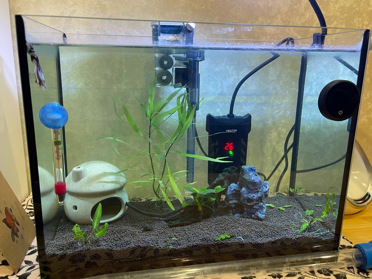 soneta 1 Жалоба Опубликовано 28 декабря, 2025 1. Объем аквариума - 20л, запущен 04.07.2025. Живые растения: Криптокарина (1 небольшая и 4 детки ), Анубиас на коряге Мангрового дерева и еще одно растение на заднем плане (название не помню). Грунт Нилпа (Про Плант, нейтральный грунт для аквариумных растений). Декор: глиняный домик и натуральный камень (окрасился из-за кондиционера) 2. Петушок живет один. Кормлю 1 раз в день по 3 штучки TetraBetta Granules. 3. Подмена 1 раз в неделю 30%. Фильтр - Silver Berg Outside 250, до 250 л/час, 3.8 Вт. 4. Параметры воды: температура на ртутном градуснике 25 градусов, а на нагревателе 26, ph - примерно 7.8, gh - примерно 5, kh - примерно 4, NO3 - примерно 5, NO2 -0, Хлор -0. Измеряла тест-полосками. 5. 26.12 делала подмену воды 30%, с этого дня петушок стал менее активным. Сегодня (28.12) весь день висит у поверхности воды, перемещается от угла к углу, плавники не раскрывает, реже лежит на дне, на ночь уходит в домик. Как поменяла воду, напузырил меньше, чем обычно. Не реагирует на всякого рода взаимодействия, только глазами следит. Также вечером 28.12 сделала подмену процентов 20% на всякий случай. Поделиться сообщением Ссылка на сообщение