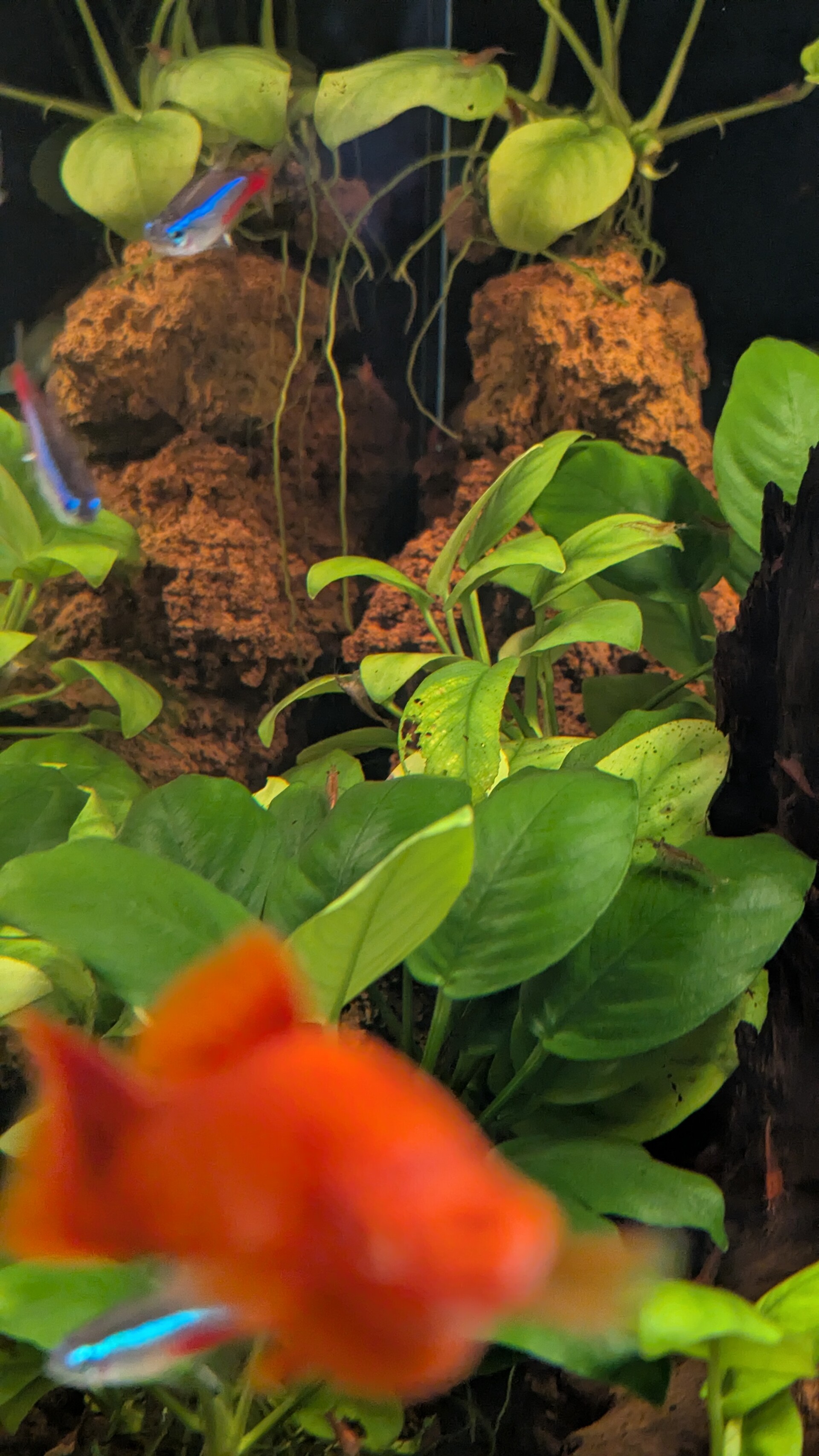 Constted 0 Жалоба Опубликовано Tuesday в 07:05 Добрый день, товарищи. Обращаюсь к вам как к специалистам в сфере аквариумистики. Не сказать, что визуально в моем аквариуме большие проблемы, но они есть. В частности с ростом растений. Некоторые анубиасы чувствуют себя более менее, на некоторых появляются дырочки, на более светлых листьях - точки, некоторые новые листья растворяются (не часто, но бывает). Буцефоландры растут прям медленно, и по началу сбросили чуть ли не все листья. Сейчас восстанавливаются. На Тайландском папоротнике черные края листьев, некоторые дырявые, некоторые отмирают.Болбитис и винделова запущены около месяца назад, но чувствуют себя тоже не очень хорошо. Больитис лысеет, винделова в одной поре, но грешу тут я больше на повреждённые корни (такие купил). Вводная информация. Возраст аквариума - 7,5 месяцев Объем около 150литров. 55*55*50см Подмена - раз в 7-9 дней около 45 литров Вода чисто водопроводная, не отстаиваю. Грунт - в основном лава. Края - пропант. Ну и большая коряга, которая сильно красит мне воду) Население: неоны порядка 12 шт, велиферы - 4шт., меченосцы - 3 шт, сомики панда - 5шт., сомики анциструс - 3шт., куча креветок и кое какое потомство). Как то резко сократилось число панд с 9 до 5. Не знаю с чем связано, но не думаю, что проблемы в воде. Много приплода было и визуально чувствует себя рыбка хорошо. Растения - в основном анубиас. Так же папоротник тайландсский, винделова, болбитис, буцефоландры, мох. Раньше было 2 приличных куста Криптокарины - убрал месяц назад. Тесты воды (нилпа): Нитрит - 0 Нитраты - 5-7 Фосфаты - было 5+. рН - 7,5 КН - 7-9 Нитраты в данном диапазоне с самого запуска и не поднимаются. 1 неделю назад начал мерить рН - было прям самое темное. Произвел замену через 3 дня. Показатели чуть уменьшились - думаю стало около 5. Через 2 дня произвел ещё замену - сейчас около 3-4 думаю. Но и нитраты падают, а их и так мало было. Я так понимаю чего то в моем аквариуме не хватает. Помогите разобраться. Поделиться сообщением Ссылка на сообщение