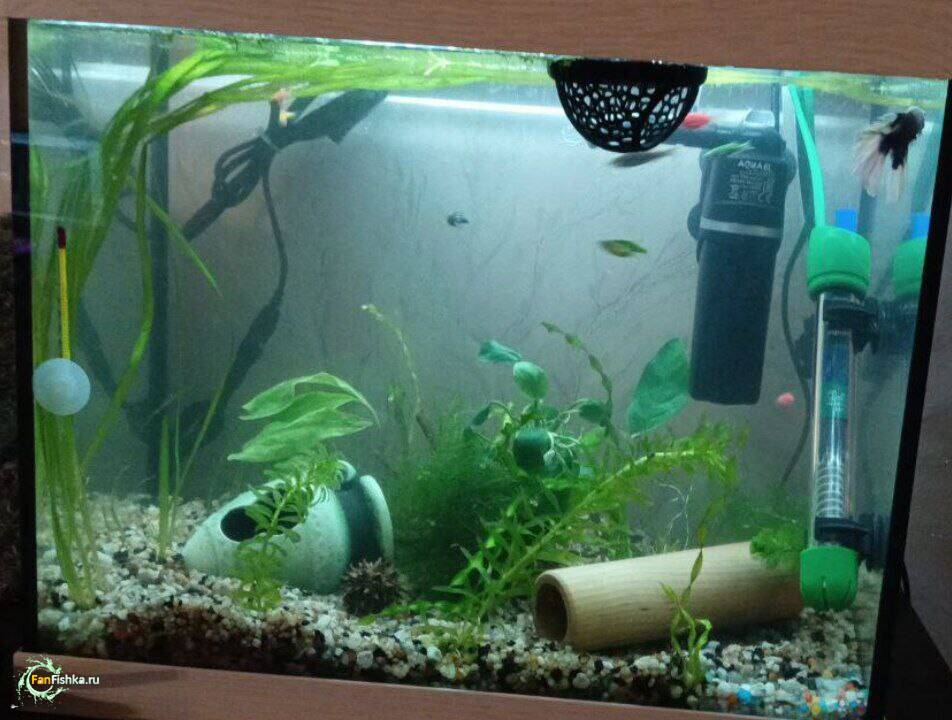 Buby 13 Жалоба Опубликовано 21 января купили аквариум 3 января, заселили всех сразу 8 данио сомик петушок, использовони только кондей который я показывала, вода из водопровода, рыбы плавают они всегда очень активные друг за другом гоняються кружатся, там шас еше желтая улитка живет, растения 4 штуки 2 анубиаса эладея и еще пушистенькое чтото , свет включаю часов на 10 может даже больше... почти всегда делаю перерыв часа на 3 днем по свету, кормлю хлопьями 1-2 раза в день последнюю неделю, вначале некоторые рыбки стали с пузцом, я перестала их кормить чаще 2х раз, бывает даже 1 раз кормлю. Петушок отсажен один в 10литровке, там анубиас и пушистенькое растение ускуственные убрала от него, сверху рязка, воду ему тодже меняю 2 раза в день, утром 20 утра и вечером 22(+\-30 минут) один раз кормлю тоже хлопья ксожелению без названия у меня что дали в 1вом зоо магазине.. Грунт пока не меняла не как не доедит Поделиться сообщением Ссылка на сообщение