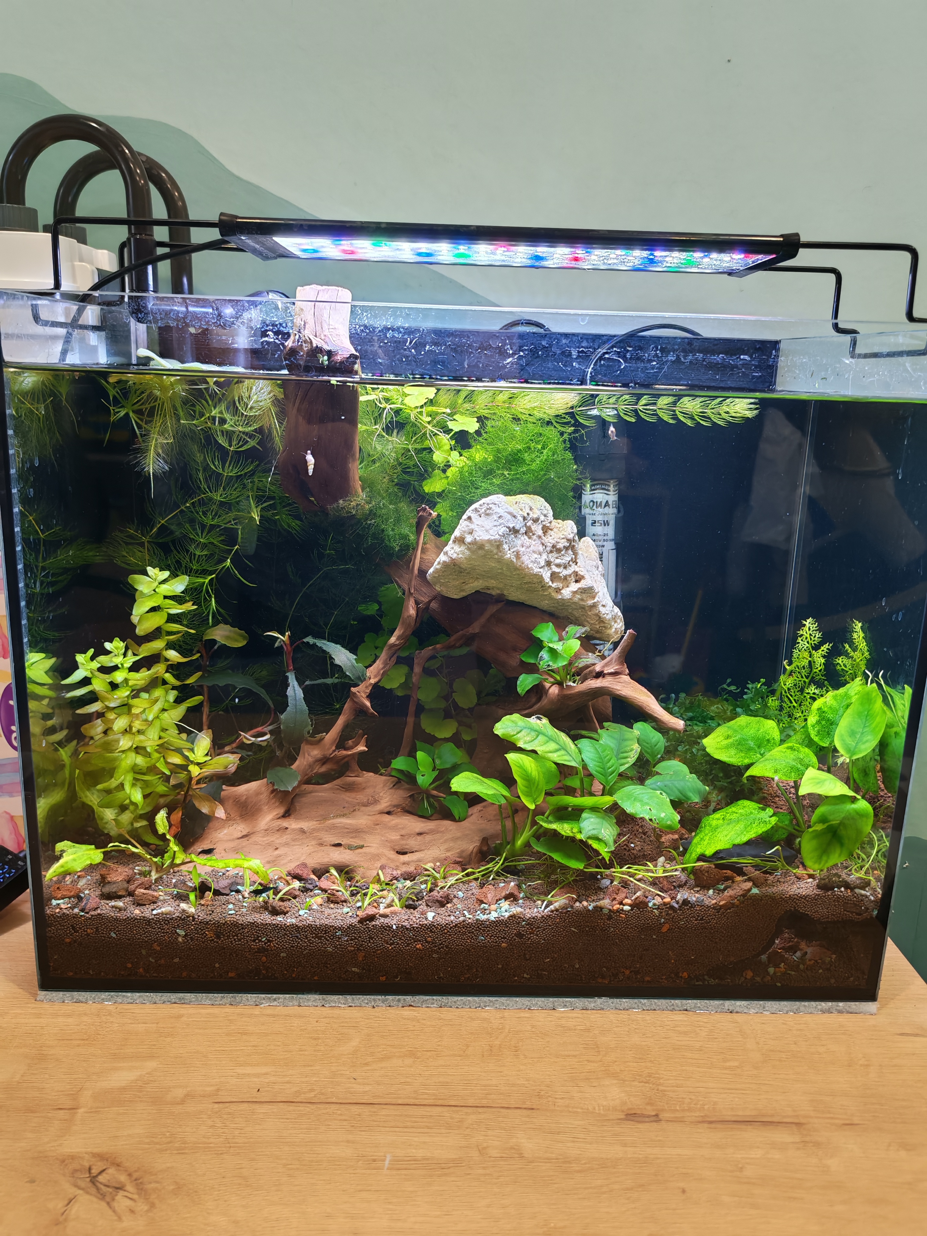 Идария 36 Жалоба Опубликовано 3 февраля Добрый вечер. Я это сделала, убрала подложку. Чесно, очень не хотела этим заниматься, но как поняла, лучше сейчас. В принципе всё осталось так же, как и было, только папоротник пал жертвой 4 пересадок... Очень уж он ломкий 🥲 Приклеила к камню что от него осталось, а все чёрные, плохие листья выкинула. Был попышнее, но пока всё поправляла ещё ветку большую сломала. Надеюсь, через месяц-два будут новые красивые зелёные листья. Пока приклеивать буцефаландру и анубисы к коряге, убирала и заново делала, листья подвяли и теперь не очень красивые. Да и вообще анубисы плохо выглядят 😟 Нашла обеих креветок, чему очень рада 🎉. И, как мне кажется, это самец и самка, если смотреть что одна серая, а другая чёрная какая-то По воде. Налила 10л дистиллированной и остальная аквариумная. Сейчас сделала тесты, показатели следующие: pH 7-7, 5 gH 7 kH 4 аммиак 0 нитриты больше 0, но меньше 0,1 нитраты 5 фосфаты 0,5 Вопросы: 1. Есть удобрения микро и npk. Когда их вносить? Доза как в инструкции или пока поменьше? 2. Сколько по времени сделать свет лучше? Синий и оранжевый тоже за включённый свет считается или можно отнести к подсветке? Просто хочется любоваться аквариумом, а не смотреть на выключенный 😊 3. Нужно ли ещё как то менять показатели воды? Может менять 2 раза в неделю по 20 или 30% (50/50 дистил и кран)? Как поняла из видео про подмены, так лучше 🤔 4. На листьях, коряге много грязи и каках. Это значит, что фильтр слабый/течение? Как это убрать? 5. Чем чистите стекла изнутри? 6. Когда можно запустить пару коридорасов? Их там ждёт специальный домик 🤗 7. Нужно ли добавить бактерии Тетра Бактозим или они теперь нужны будут только в случае перезапуска? 8. Что за улитка? Хелена? 1 1 Поделиться сообщением Ссылка на сообщение