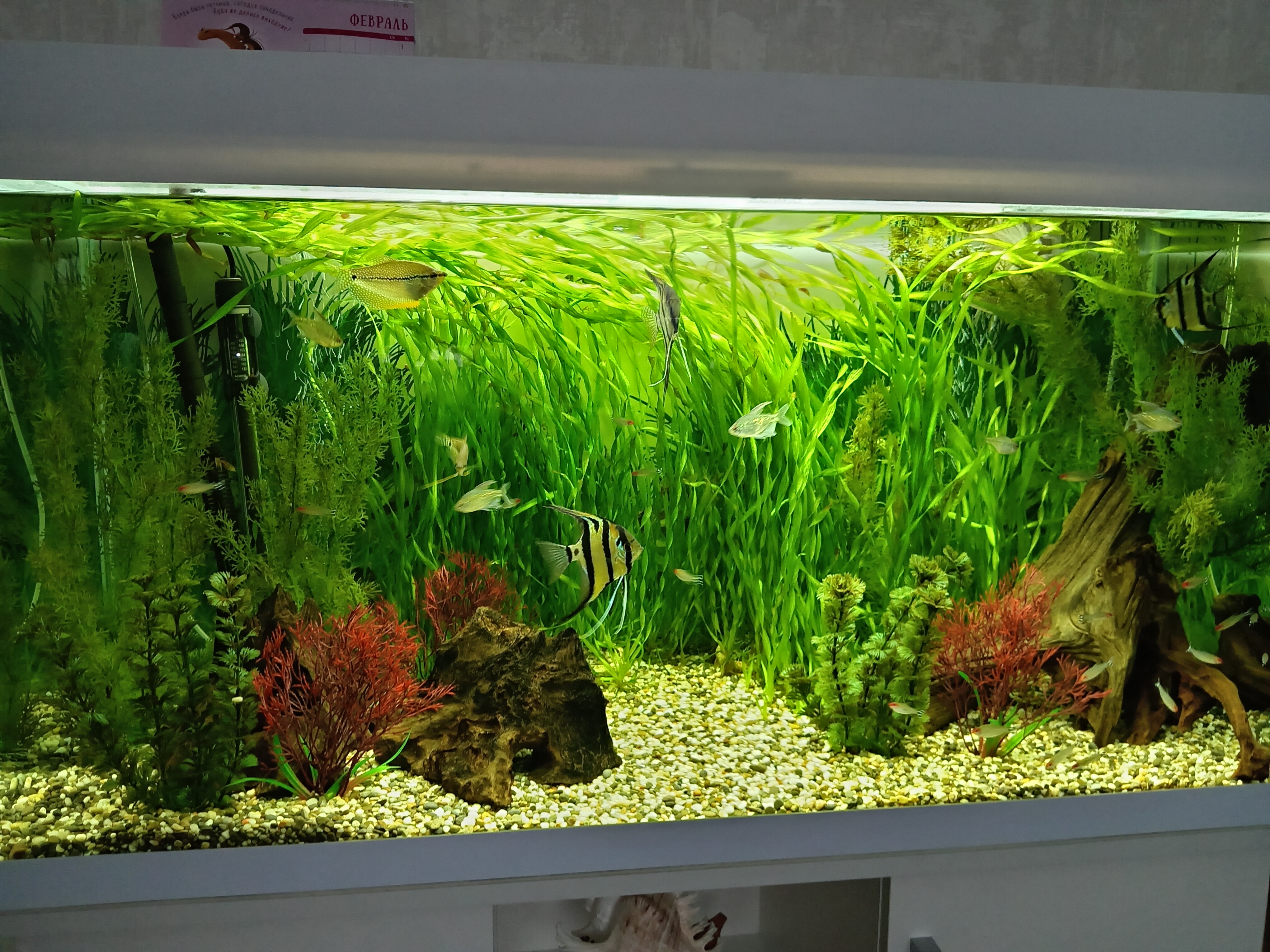 Мета 16 Жалоба Опубликовано 24 февраля Доброго всем дня, постепенно запустила аквариум на 200л, в реальности 180(минус грунт и коряги). Фильтр внешний-Aqwael Ultramaks 1000. Компрессор schego W32. Из растений заросли валлиснерии, несколько пластиковых, и есть коряги. Население: 4 молодые скалярии, 21 родостомус, 5 бриллиантовых тетр, два сома анциструса, и 2 жемчужных гурами. Хочу ещё пару тройку гурами подселить, не будет ли перебор? Поделиться сообщением Ссылка на сообщение