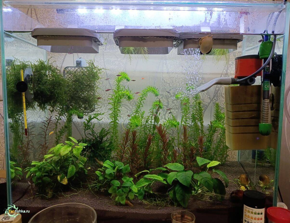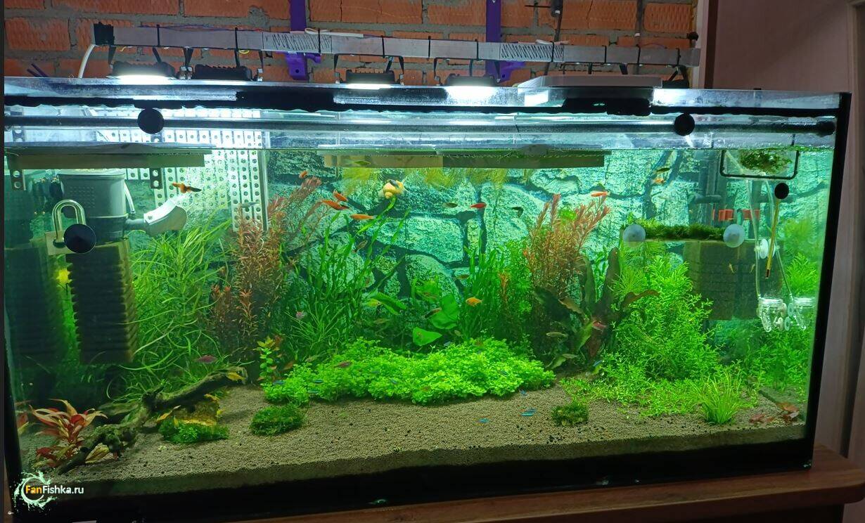 ЛаГГен 7526 Жалоба Опубликовано 1 час назад 2 часов назад, FunnyManNsk сказал(а): оу... видимо я перестарался. Я читал что для травников надо 70-90 люм на литр. Ну и сделал 80 люм на литр, ну или в ваттах получается 1 Вт на литр. Получается надо свет в 2 раза урезать по мощности У вас ещё далеко не травник,травник - это когда при виде сверху грунта не видно,имхо.А при такой мощности света и дуть газ надо почти прямо из баллона и удо лить вёдрамиВот на картинках с подачей газа свет 0.4-0.45 Вт/л. Вот без подачи газа свет 0.3-0.33 Вт/л.Ещё приходится и притенять плавающими растениями,чтобы ксена не было 1 Поделиться сообщением Ссылка на сообщение