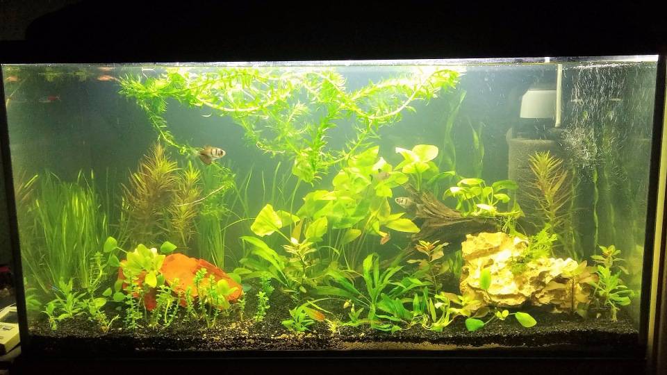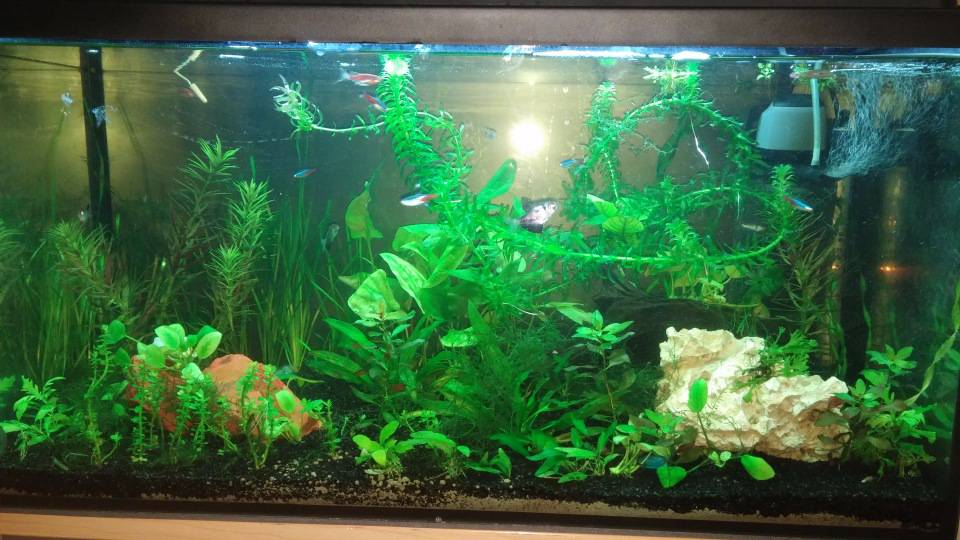 Asjunjka 24 Жалоба Опубликовано 6 января, 2017 Вот же блин. Расчитывала что вместо. В ленте да. Там совсем мало. Ну, на вид. Она болше для эстетики. Все таки аквас с ледовским освещением играет совсем подругому. Насыщенные цвета, даже в грунте каждую блестку видно. По лэдкам, нашла на американском сайте калькулятор, ща не помню где, до запуска еще, там вычитая весь литраж грунта подложки, декораций и оборудования, насчитали что у меня 98,8 литров и надо мне 29.2 люмена на литр. Врут, да? Вообще,растения прижились оч хорошо.выросли все вдвое. Кроме кустов в центре. Они умирают. Несмотря на скудность освещения. Мой маленький аквас подсвечивался только настольной лампой, лед 5w 520 lm, сбоку, и пёрли так, что мама дорогая. В сотку я еще 2 недели CO2 подавала, но устала бороться с пленкой и решила пока не приедет скимер, не подавать. Мошт поэтому желтят. А, ну и тут взвеси боьше. А улиток я, как ни смешно, боюсь)) И стоят они у меня не чищенные)) Эти розетки в центре очень жалко. Они мне очень нравились. Поделиться сообщением Ссылка на сообщение