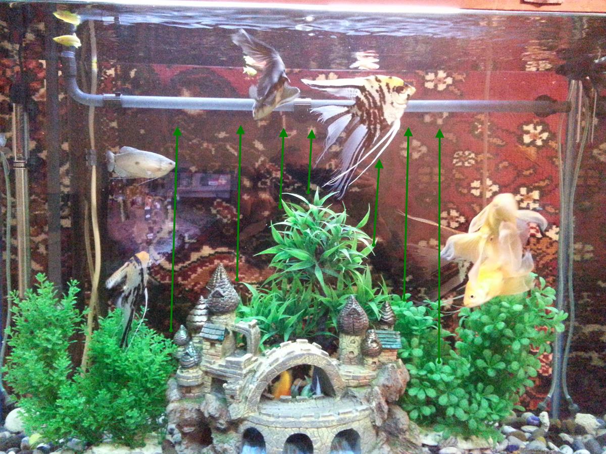 VolanDeMort 375 Жалоба Опубликовано 18 января, 2018 Помогите настроить угол флейты внешника!! Никак не могу настроить флейту, то сильное течение, то как будто вообще ничего нет.. Флейта расположена на задней стенке аквариума, почти по всей длине стенки. На дне этой же задней стенки аквариума проходит шланг (распылитель) для кислорода. Первоначально, флейта была направлена отверстиями ко дну аквариума и пузырьки кислорода поднимаясь вверх смешивались с водой из флейты, направленной ко дну аквариума. Но было такое впечатление, что нет течения в акве. Решил поменять положение флейты и повернул её на 45 градусов к поверхности аквариума, теперь на поверхности аквы есть рябь, есть течение.. На фото обозначил красными стрелками поток воды из флейты, а зелеными кислород, правда на фото его нет, я его отключил для съёмки. Но кормить рыбу стало неудобно, весь корм расплывается от течения.. И по моему даже не только корм... Подскажите, как лучше сделать? Может вернуть на место как было? Или повернуть флейту в заднюю стенку аквы? Поделиться сообщением Ссылка на сообщение