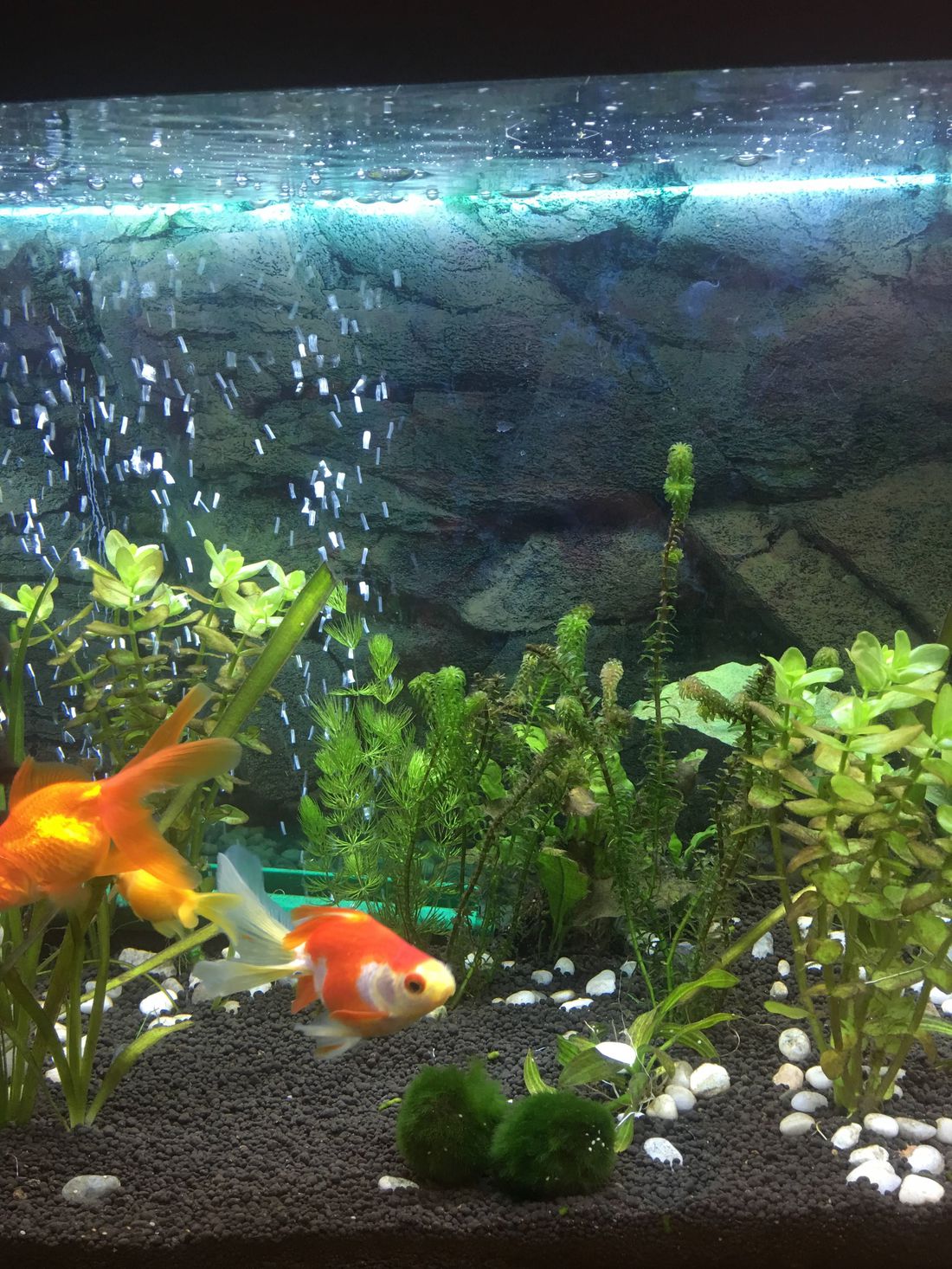 я честно говоря не большой специалист в этих вопросах, но вот эти вуалехвосты , они вроде не для аквариума с растениями( но могу и ошибаться).Кладофору я бы тоже не советовала как и удобрения .Половина ваших растений прекрасно сможет жить и без удобрений и без яркого света.Анубиасы те так вообще специально притеняют.. И их не сажают в грунт обычно, привязывают на коряги, декорации.Роголистник и элодея это скорее плавающие растения они отгниют скорее всего там где посажены.