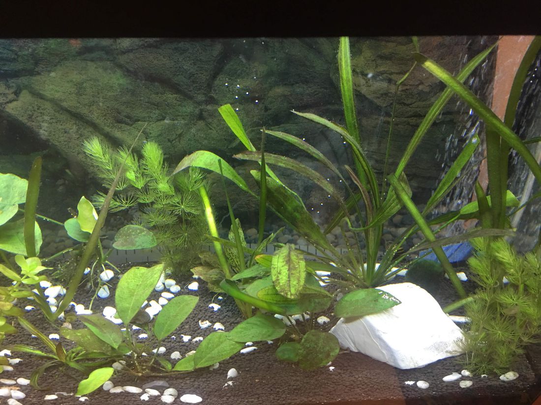 Из растений у меня 4 Кладофоры, 2 вида (всего 3 растения) Анубий, 3 вида (всего 4 растения) Эхинодорусов, 2 Элодеи, 2 Бакопы каролинской, тайландский папоротник, яванский мох, ВаллиснерияРоголистник