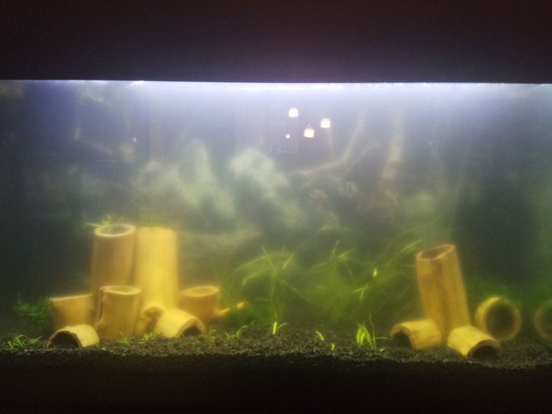 lexid 1 Жалоба Опубликовано 17 января, 2019 Свершилось. 11 января забрал аквариум, 12 начал обустройство. Промыл и засыпал грунт (крашеный обкатанный гравий от Минерал-Арт Дизайн), прокипятил и установил дубовые трубки, полу-трубки, пеньки, посадил растения. Подключил фильтр Акваэль турбо-500, сменив комплектную губку на более мелкопористую, комплектную керамику оставил, подключил компрессор от Тетры, на всякий случай установил грелку от Акваэль, но не включал пока, повесил на стекло градусник Тетры TH 30. Теперь вода: учитывая ранее описанную жесткость, 10 частей бутилированной воды смешал с 4 частями водопровода в общей сложности 87 литров. Спустя сутки запустил в акву 4 ампулярии. Спустя 5 дней запуска, ситуация следующая: вода в аквариуме "непрозрачная", почти на всех поверхностях белые "усы" или "борода". Тесты Нилпа показывают следующее: ph - 7,5-8 (замерял дважды - ночью и утром) kh - 6, gh - 9. Производительность фильтра упала. Заменил мелкопористую губку обратно на комплектную с большими порами, ибо мелкопористая забилась напрочь - за ночь видимость улучшилась, но все равно прозрачности нет. С градусником неясная ситуация - показывает 27 градусов, тогда как кухонный градусник Икеа показывает 25. Собственно желаю получить ph хотя бы 7, а лучше 6,5, прозрачную воду. Ждать дальнейшего развития событий или предпринимать какие-либо действия в виде добавления, к примеру, тетра кристал вотер, phминус, или иных каких-то средств? Поделиться сообщением Ссылка на сообщение