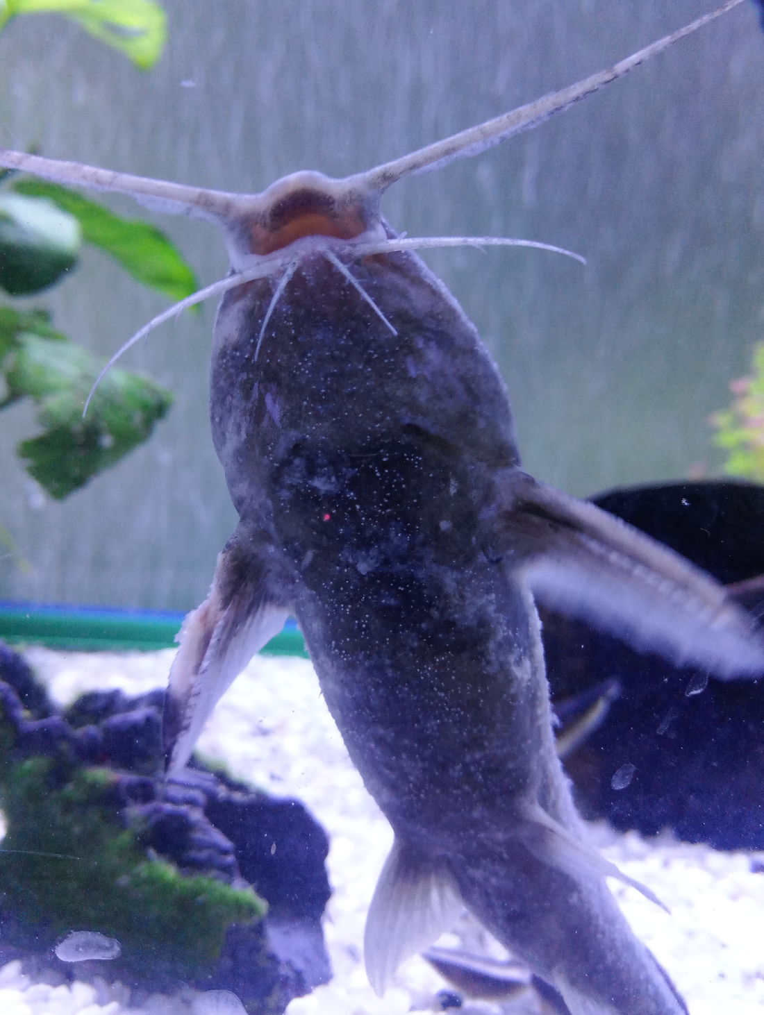 @Таньчик она интересная, но пугливая очень. На самом деле до недавнего времени ее и не видно было. После отравления постоянно по стенке плавает. Может кверху пузом плавать по поверхности воды или замирать там. Чем нас неоднократно пугал) название синодонтис вроде
